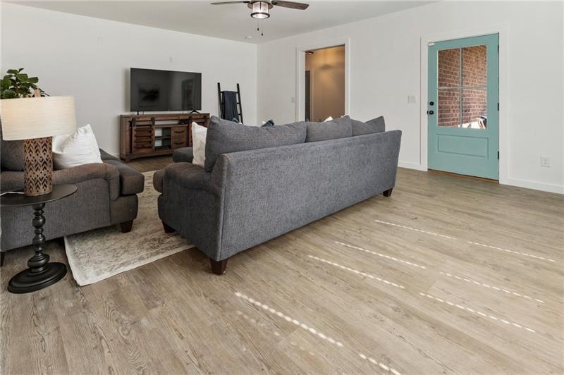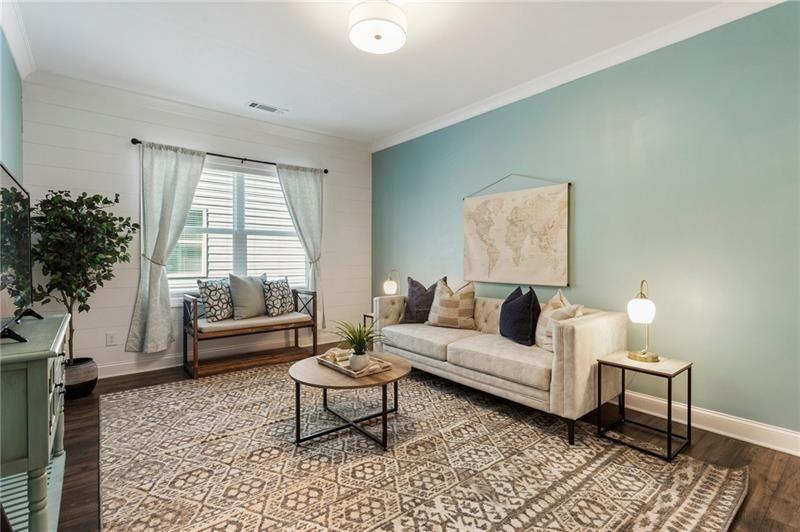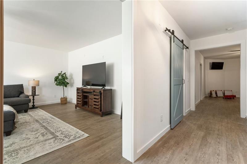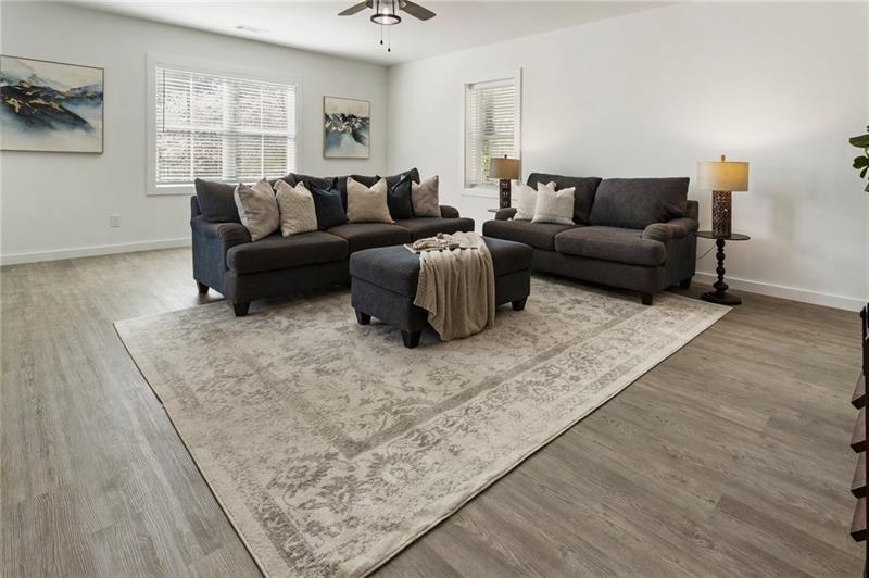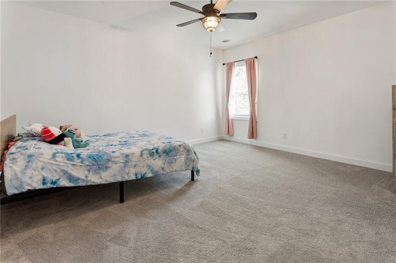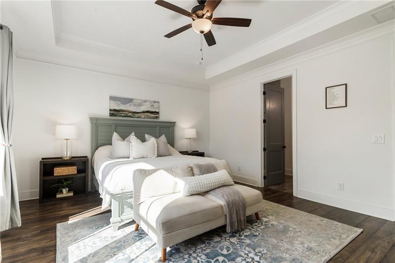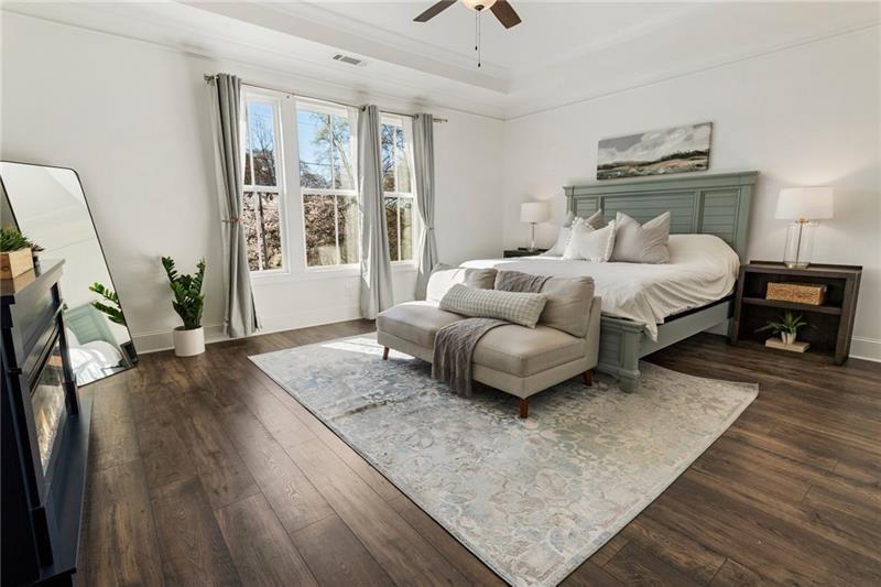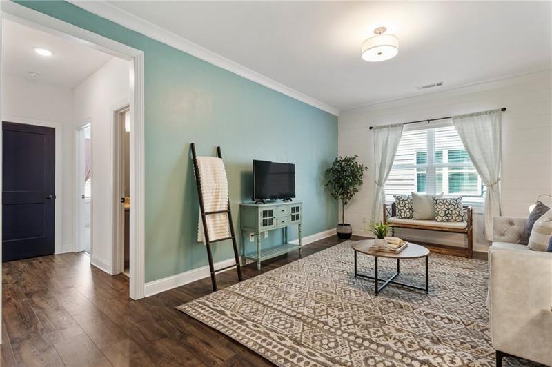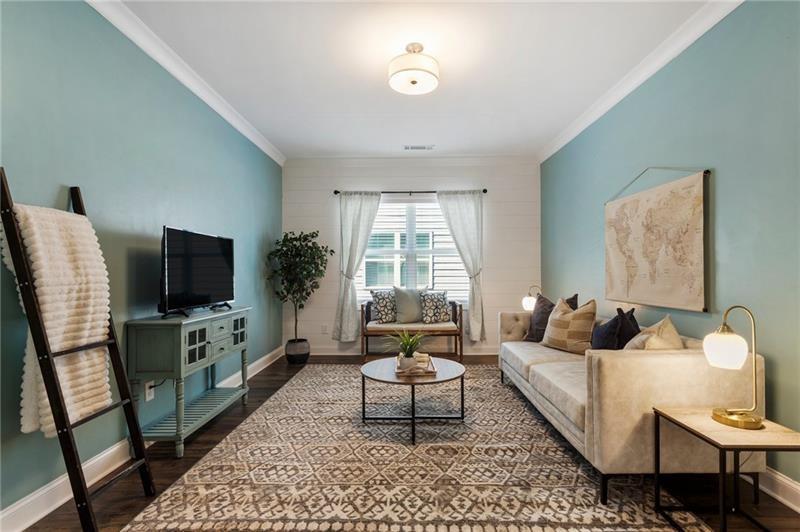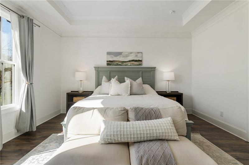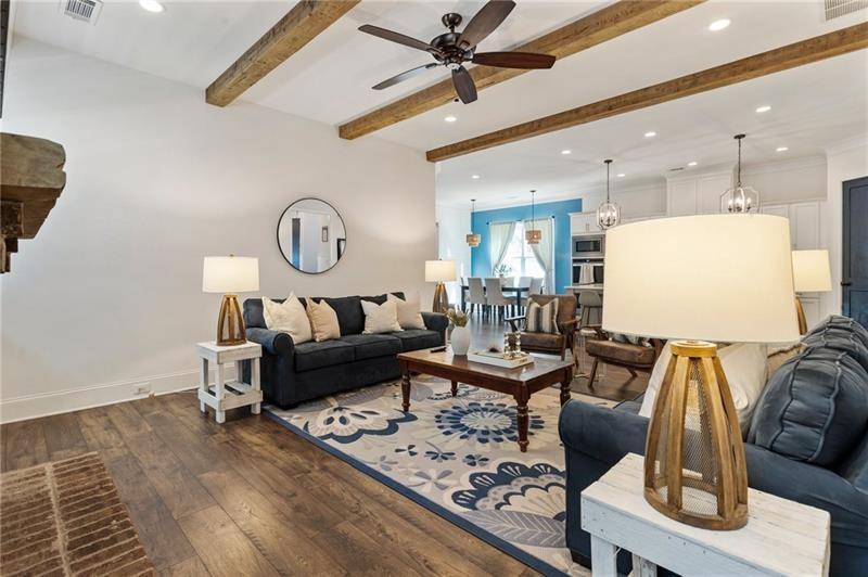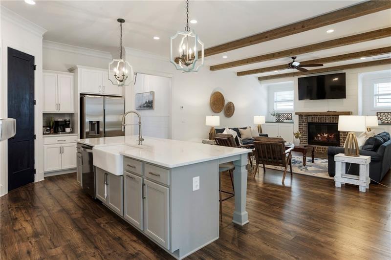 Welcome home to 5902 Mitchell Street! Built by award winning local builder, HillGrove Homes. You will be captivated by this fenced in 5 bedroom, 4 and a half baths, stunning home on a corner lot. This well maintained 2022 build has a beautiful beamed ceiling in the fireside keeping room, open concept kitchen, expansive kitchen island that seats 4 and primary bedroom on the main. Enjoy relaxing on your screened in porch year around watching football in the fall with the fireplace on or enjoying the springtime weather. The primary ensuite features spa like oversized shower with dual vanity and huge closet. The large kitchen has stainless steel appliances, beautiful quartz throughout and overlooks the keeping room. Upstairs, features a loft, entertainment area and 3 large secondary bedrooms and two bathrooms. The terrace level offers a secondary living space, gym, bedroom, full bath, game room and ample storage. 5902 is a gardener's dream with pristine landscaping, beautiful azaelas bordering the homes, tulips and more. Located near downtown Flowery Branch, Lake Lanier, Restaurants, shopping and more. Walk or drive your golf cart to Flowery Branch Farmer's market, weekend festivals, concerts and all that downtown has to offer.