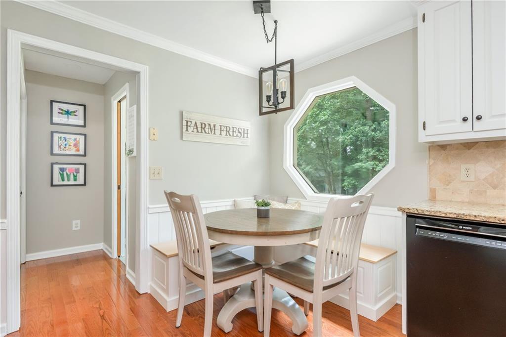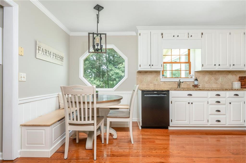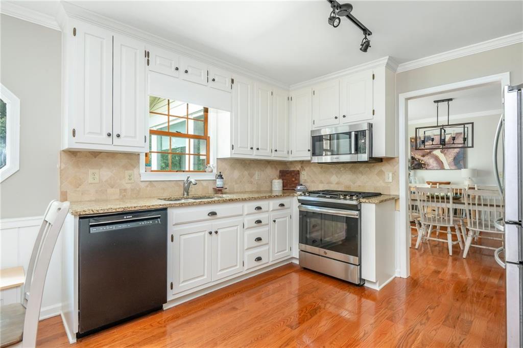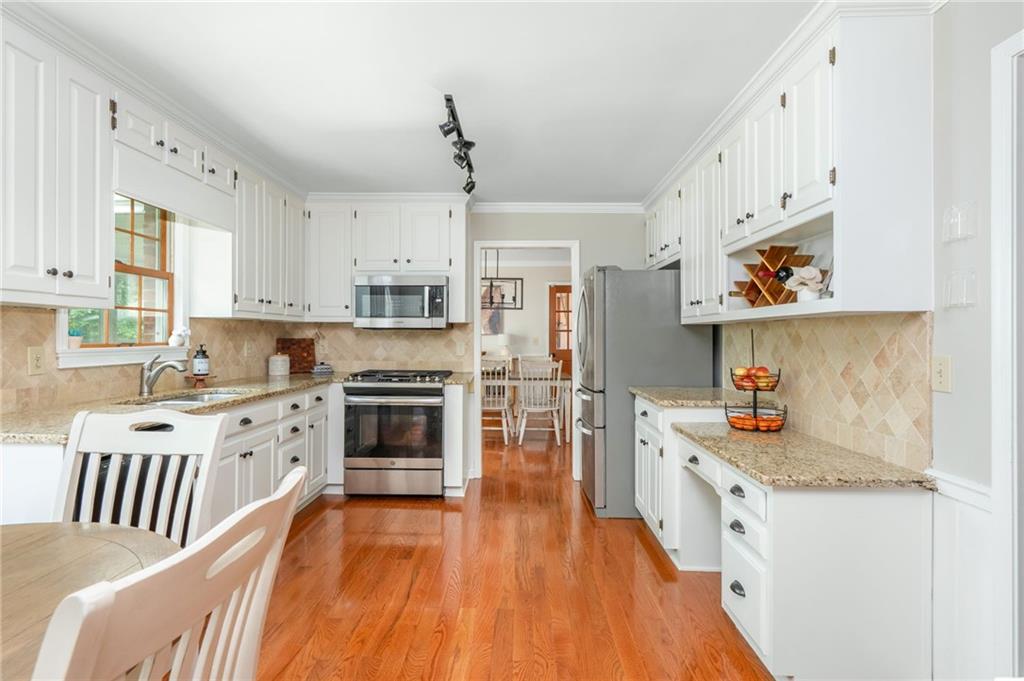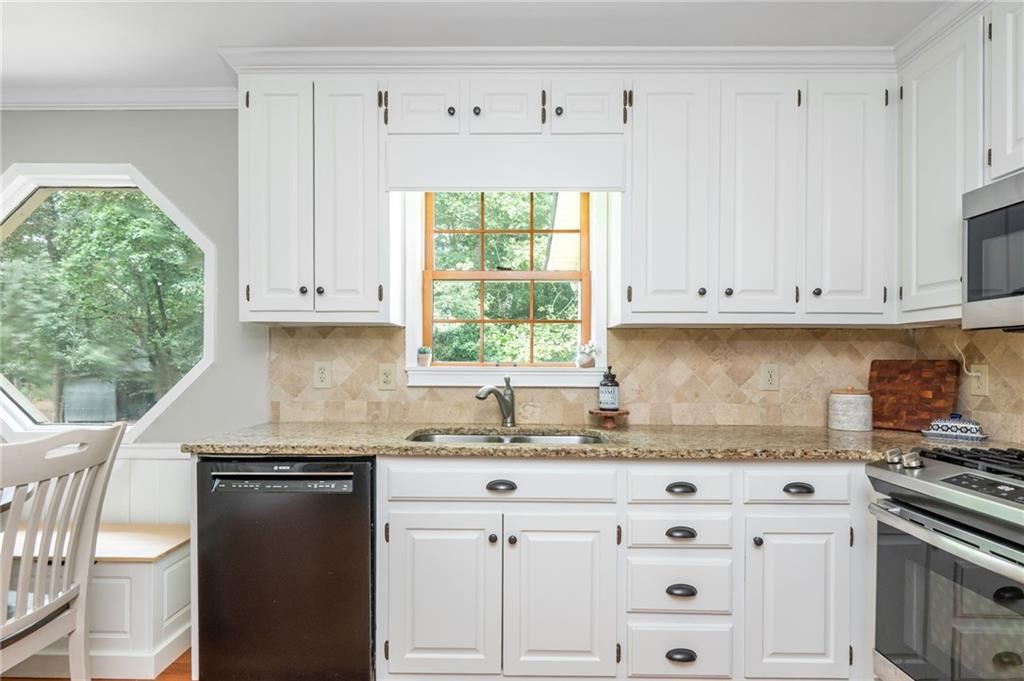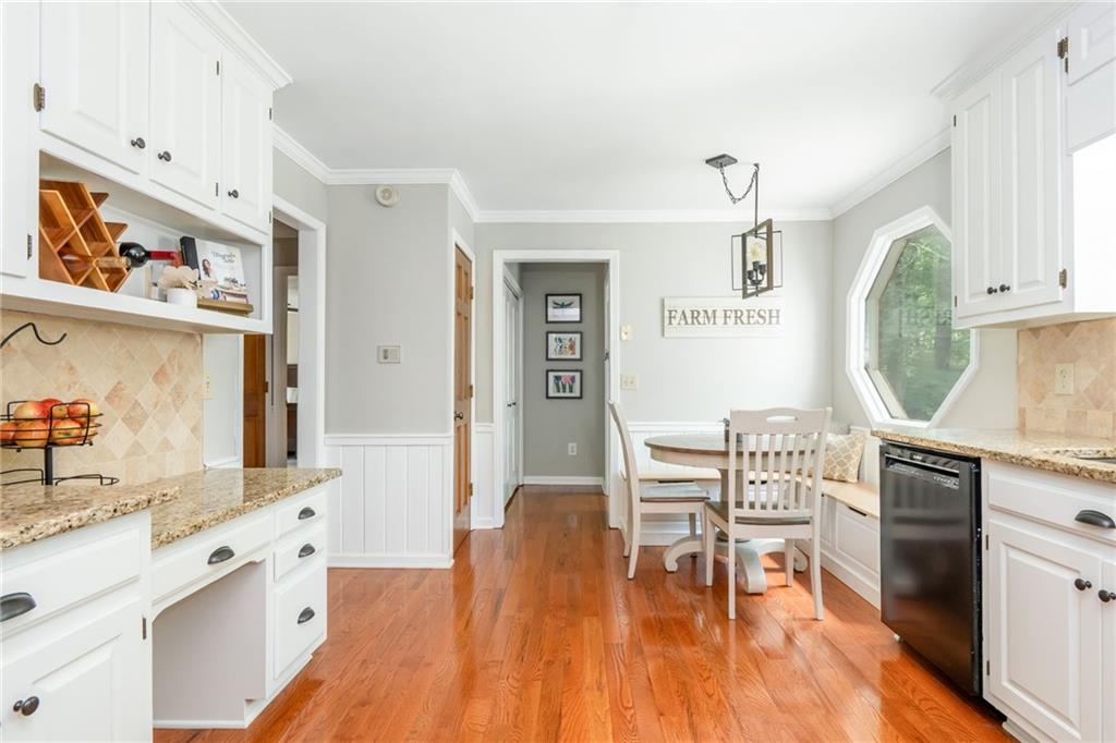 - KitchenCabinets White, Eat-in Kitchen, Pantry, Stone Counters