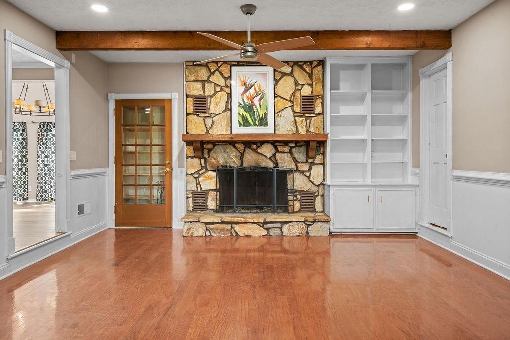 - FeaturesBookcases, Beamed Ceilings, Coffered Ceiling(s), Crown Molding, Entrance Foyer, Vaulted Ceiling(s)