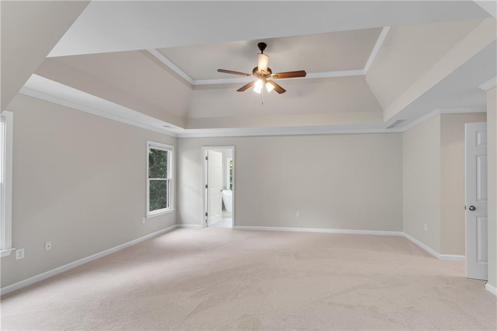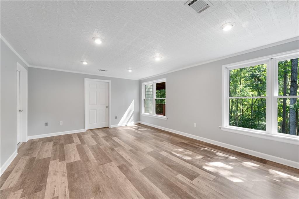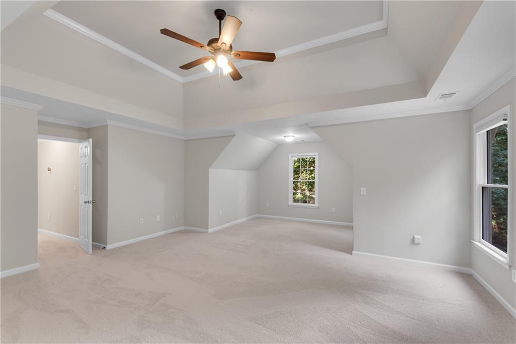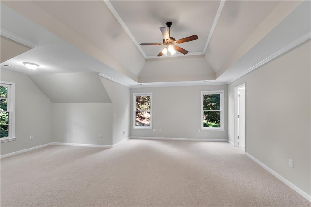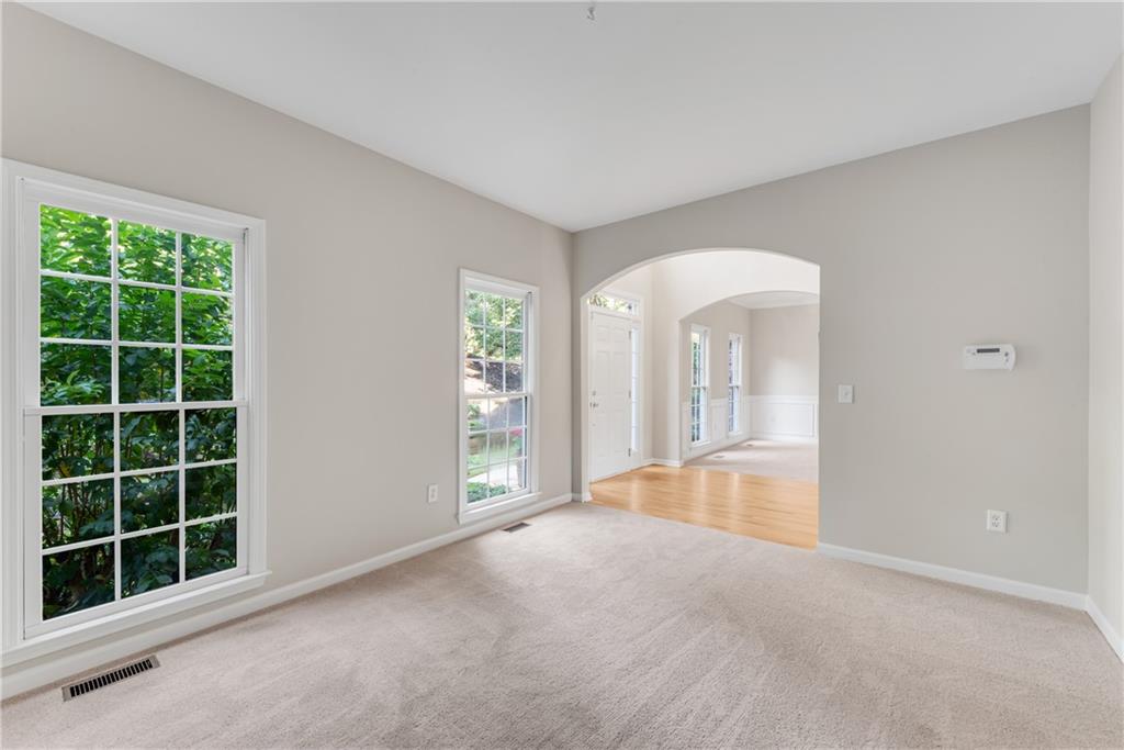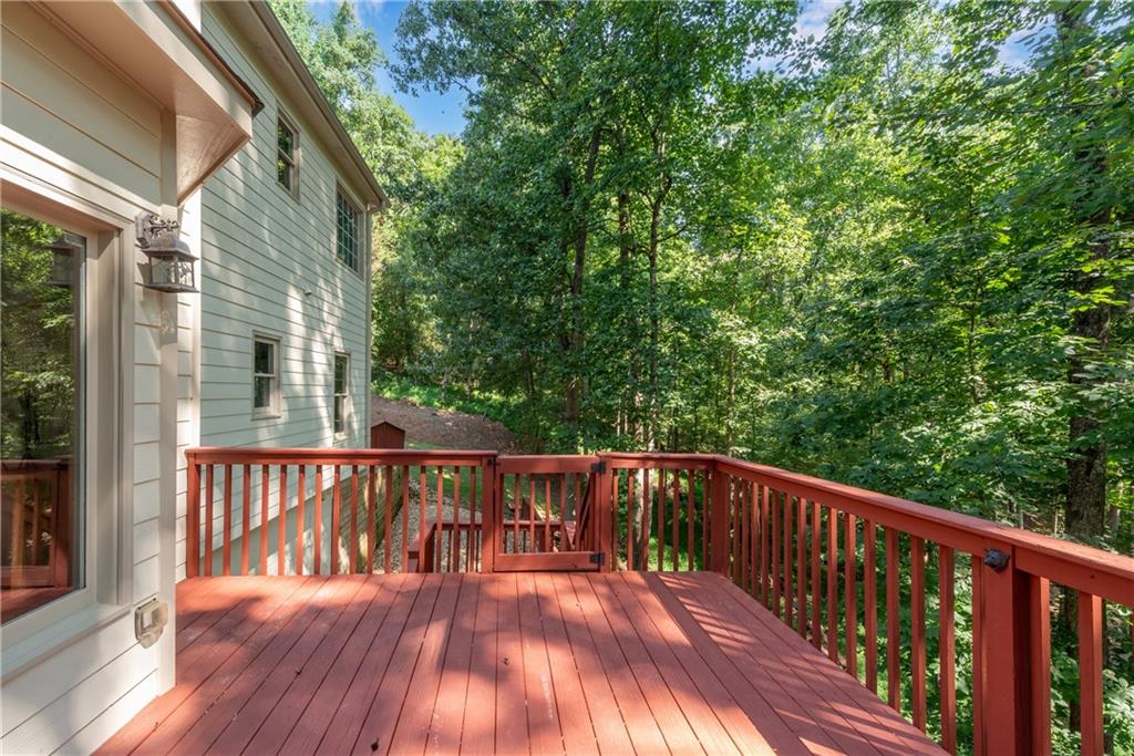 Move-In Ready 4-Bedroom, 2.5-Bath Retreat on Over 2 Acres in the Coveted North Forsyth School District! Discover the perfect balance of neighborhood living and private sanctuary in this spacious 4-bedroom, 2.5-bath renovated home tucked away on more than 2 serene acres in a desirable swim/tennis/pickleball community. Step inside to a dramatic 2-story foyer that welcomes you to both a formal dining room and a flexible living room—ideal for a home office. The sun-filled 2-story family room flows seamlessly into the oversized hosting kitchen, featuring stainless steel appliances, a breakfast area looking out to bay windows, a huge walk-in pantry, and peaceful wooded views. A spacious laundry room offers room for an additional refrigerator or freezer. Relax or entertain outdoors on double decks overlooking your own private wooded backdrop—perfect for morning coffee or evening gatherings while watching the wildlife. Upstairs, retreat to the expansive primary suite with a cozy sitting area and a fully renovated spa bath, complete with a jetted tub, tiled shower, dual vanities with soft-close cabinetry, and updated tile flooring. Three additional bedrooms (with a jack and jill bathroom setup) provide plenty of space for family or guests. The partially finished basement includes a media/playroom, ample storage with room to expand, and a secure safe room. Bonus features include fresh paint throughout, new carpet, newer toilets, and a Generac whole-house generator for peace of mind. This home truly offers it all—space, comfort, privacy, and a quiet community setting. Don’t miss your chance to own a nature lover’s retreat in one of North Forsyth’s most sought-after areas!