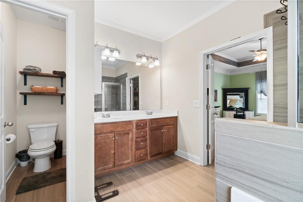 - FeaturesBookcases, Disappearing Attic Stairs, Double Vanity, Entrance Foyer, High Ceilings 9 ft Lower, High Ceilings 9 ft Main, High Ceilings 9 ft Upper, Tray Ceiling(s), Walk-In Closet(s)