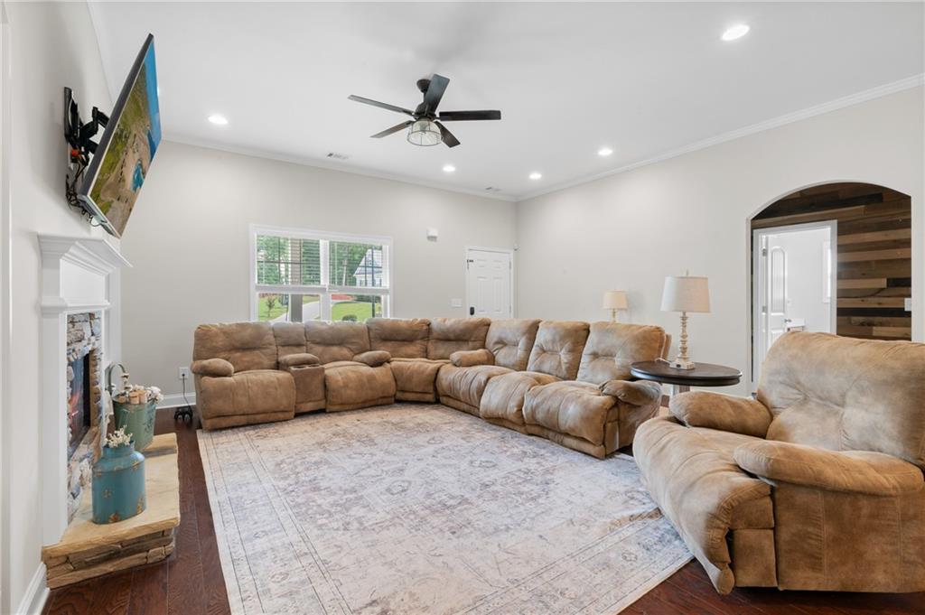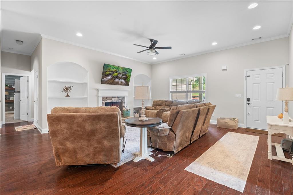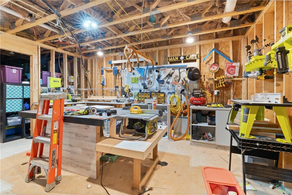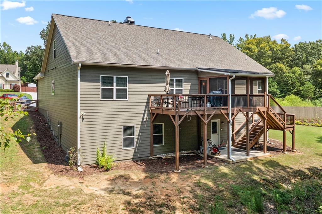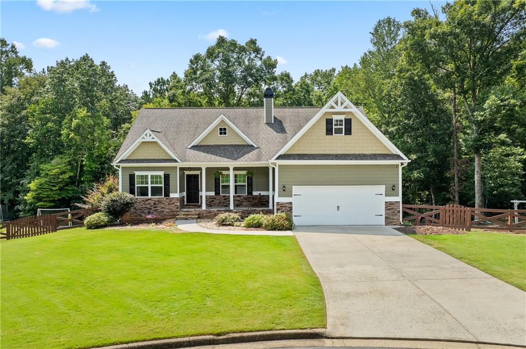 Welcome to this beautifully updated 4 bedroom, 3.5 bathroom home nestled on over half an acre in a quiet cul-de-sac. Step inside to find fresh interior and exterior paint, stunning flooring throughout, and thoughtful upgrades that make this home move-in ready. The heart of the home features an open-concept living room with built-in shelving, a cozy stone fireplace, and views to the spacious kitchen. The kitchen boasts granite countertops, stained cabinetry, a large island, stainless steel appliances, and a stylish tile backsplash. Just off the kitchen, enjoy your new composite deck and a screened-in porch overlooking the fenced backyard—perfect for relaxing or entertaining. The finished basement expands your living space with a full bathroom, workshop, storage room, and two multipurpose rooms—ideal for a gym, media room, or home office. Additional upgrades include added cabinetry in the laundry room and garage, plus a dual-zoned HVAC system for comfort throughout the main home and bonus room above the garage. Upstairs, the primary suite impresses with a tray ceiling, spa-like bath with double vanities, soaking tub, and glass walk-in shower. Secondary bedrooms are generously sized with ample closet space. This home truly has it all—style, function, and space both inside and out.