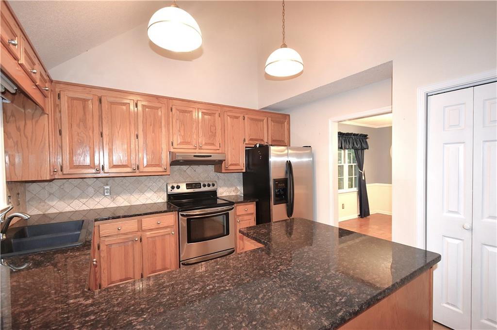 - KitchenBreakfast Room, Cabinets Stain, Keeping Room, Stone Counters, Pantry, View to Family Room, Wine Rack