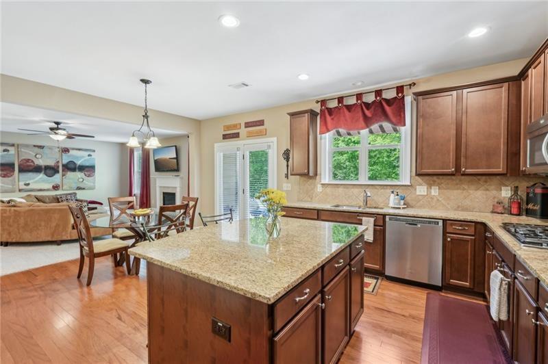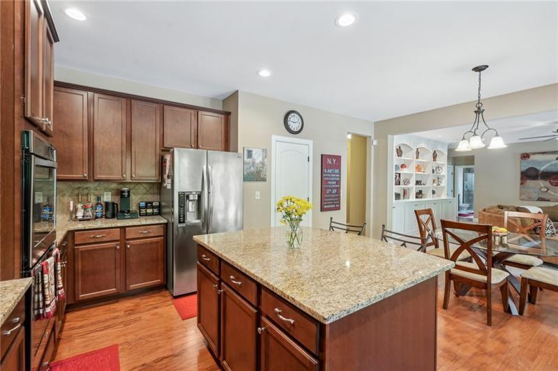 - KitchenCabinets Stain, Eat-in Kitchen, Kitchen Island, Pantry, Pantry Walk-In, Stone Counters