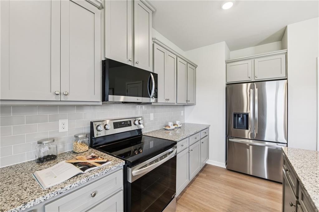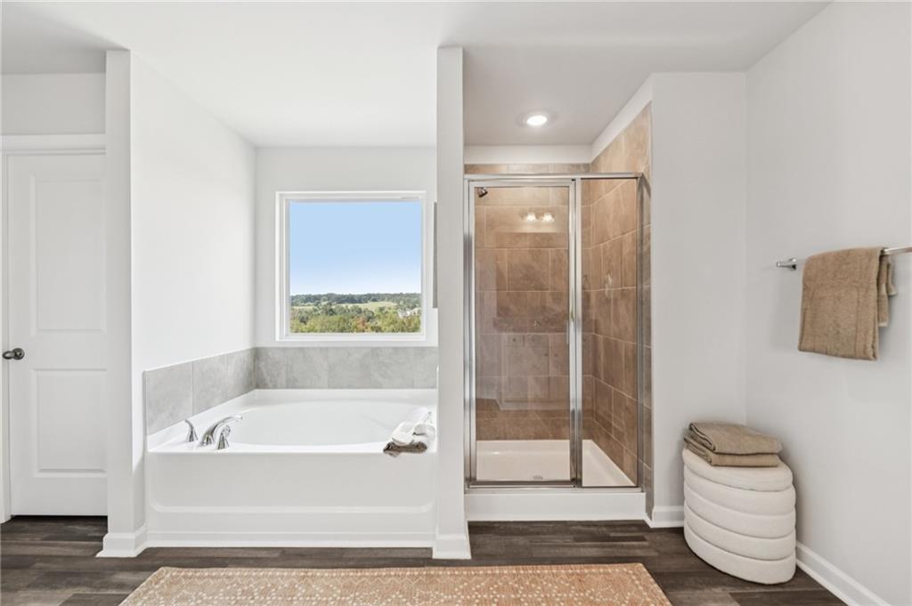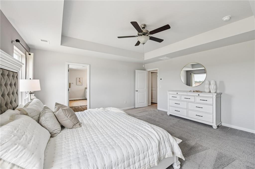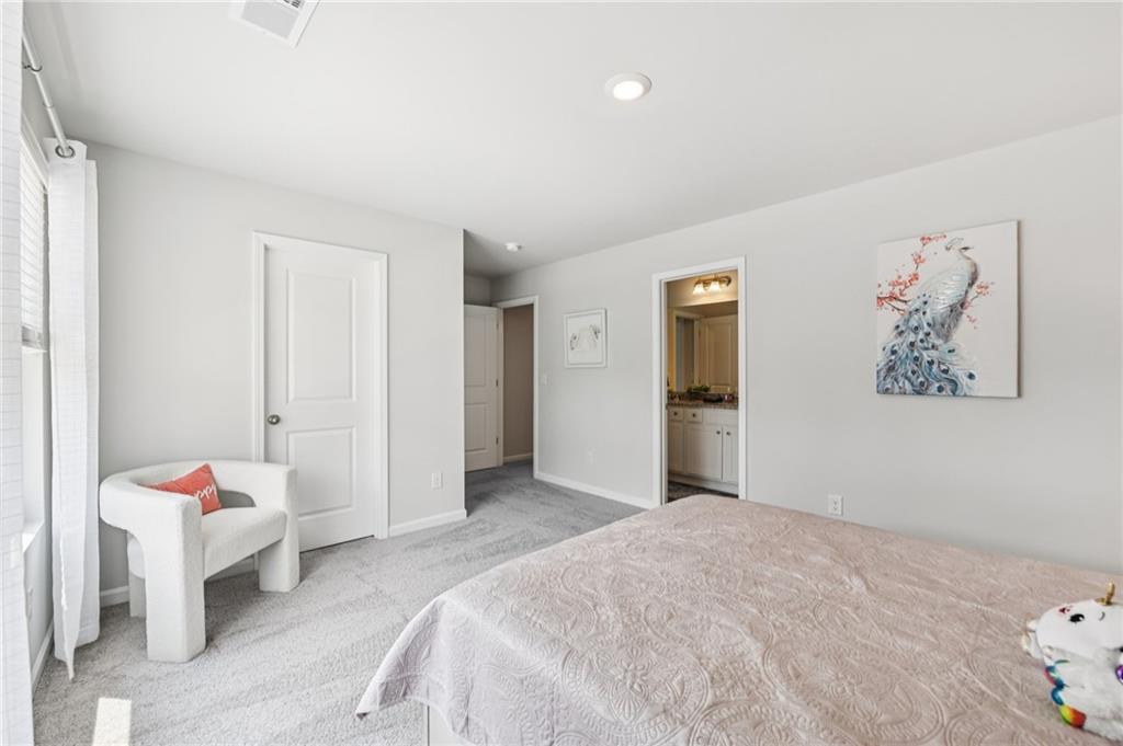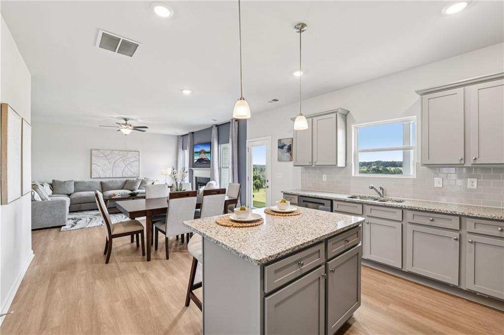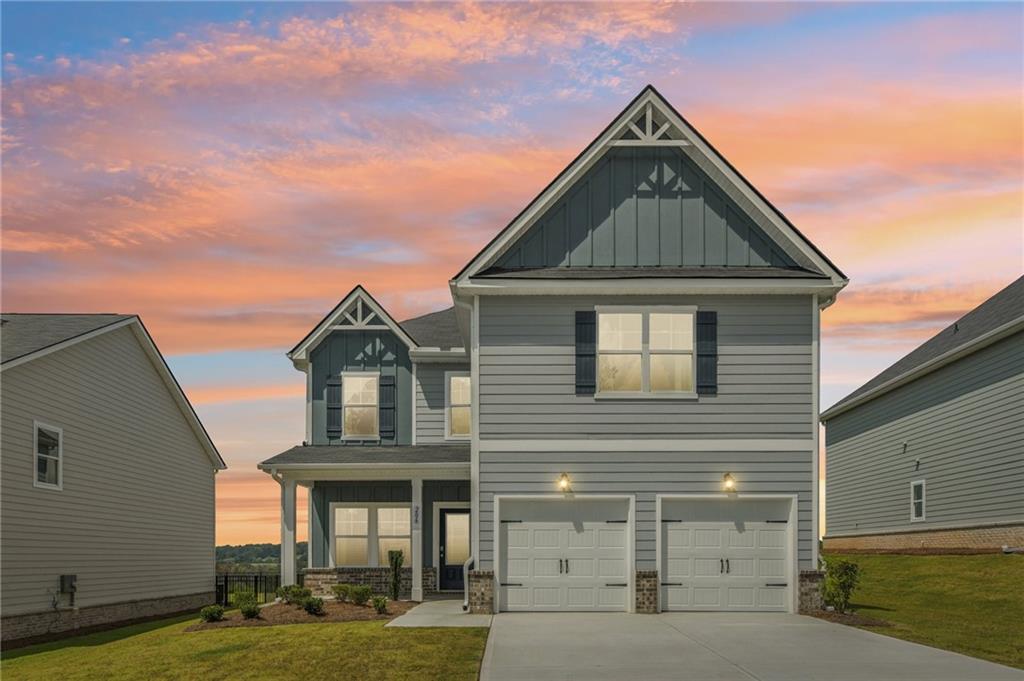 Introducing the DRESDEN! This exquisite home - ready in NOVEMBER - is a 5 bedroom floor plan masterfully crafted by Direct Residential Communities. Nestled within a resort-style swim and tennis community, this home offers unparalleled amenities for your ultimate enjoyment and relaxation. Upon entering, you are greeted by a grand two-story foyer that flows seamlessly into an open, thoughtfully designed living space with 9-foot ceilings and ambient LED disc lighting. The main level features a private guest bedroom with a full bath—perfect for visitors or multi-generational living. The gourmet kitchen is a chef’s dream, boasting a generous center island with granite countertops, timeless 36-inch shaker cabinets, an elegant tile backsplash, and a bright breakfast area that effortlessly opens into the family room. Here, a cozy fireplace creates a warm and inviting atmosphere for gatherings. Step through the breakfast area onto a concrete patio, ideal for alfresco dining or unwinding in your private backyard oasis. Silent flooring systems and exquisite vinyl plank flooring throughout the main level enhance the home’s tranquil ambiance. Ascend the open iron rail staircase to the owner’s suite, a serene retreat complete with a spacious sitting area, dual closets, and an indulgent en-suite bath featuring dual vanities, a walk-in shower, and a luxurious garden tub framed by a picturesque window. The upper level also offers three generously sized bedrooms, a shared bath with dual vanities, and a conveniently located laundry room. For added security and convenience, a smart lock provides keyless entry. The 2-car garage offers ample space, complemented by extended driveways and well-maintained sidewalks throughout this prestigious community. Experience the epitome of elegant living—schedule your tour today.