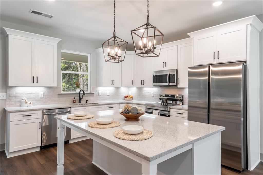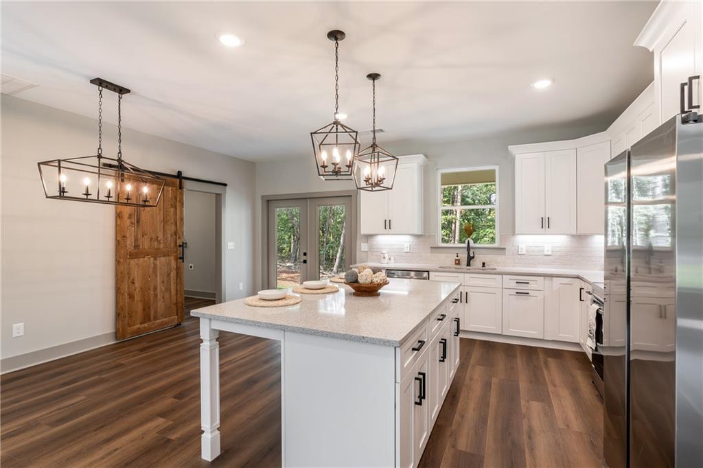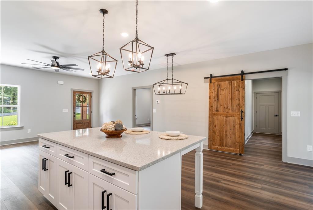 Tucked away in the Henderson Mountain area of Jasper is this stunning custom farmhouse on 1.5 acres. This home truly has it all! With stained tongue and groove porch ceilings, 10x10 rough sawn porch posts from Blue Ridge, deep porches on front and rear, wide plank LVP flooring throughout, custom lighting, quartz on all countertops, custom shelving in walk-in pantry, tile backsplash in the kitchen, soft close cabinets with accent lighting, custom drop zone in your huge laundry room, barn doors, large spa shower with frameless door, double vanities in the primary ensuite bathroom, upgraded shelving in all closets, and yes, even installed gutter guards - no detail was spared! This unique floor plan is sure to be appreciated as you will notice the spaces and unique features present are well appointed and functional! Outside you will appreciate your one of a kind, flat and level yard in the mountains that provides a true oasis for family and guest entertainment. Want to go fishing? Head down the road a mile or two and go fishing at the large 22 acre community lake! This stunning home and property will bring to fruition your dream of home ownership!