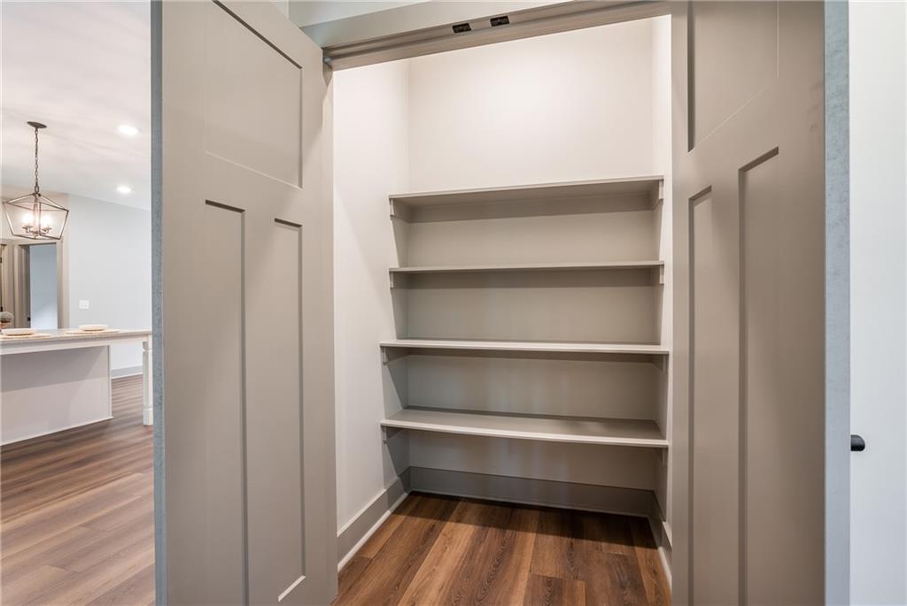 - KitchenCabinets White, Country Kitchen, Eat-in Kitchen, Kitchen Island, Pantry Walk-In, Stone Counters, View to Family Room