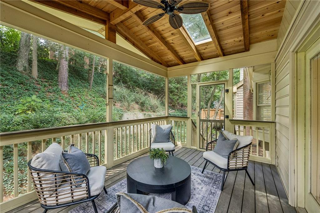 Rare primary bedroom ON MAIN in sought after Glenridge Place. Gracious and welcoming foyer with two story ceiling. LARGE, beautifully appointed living room with custom designed coffered ceiling and stunning gas fireplace. Charming kitchen with large island, lots of ingenious storage and separate breakfast area. Generously sized primary bedroom with lovely sitting room. Primary bath boasts double vanity, luxurious whirlpool tub and separate shower. Sizable primary closet with custom design features. Separate dining room, perfect for entertaining. Spacious second floor with three more bedrooms and bonus room. Plenty of room for office(s), exercise equipment and storage. Elegant powder room with Scalamandré wall paper. Easy access into home from two car garage and front steps. Newly redone garage floors. Enjoy the great outdoors on the bespoke SCREENED PORCH with vaulted ceiling and private views. Lots of natural light. Gorgeous custom molding throughout. Designer carpet and hardwood floors (downstairs hardwoods are newly refinished). Tankless water heater and new HVAC too. Great enclave location offers privacy and green space located in the heart of Buckhead near great schools, high end shopping, PATH 400 walking trail, and superb dining.