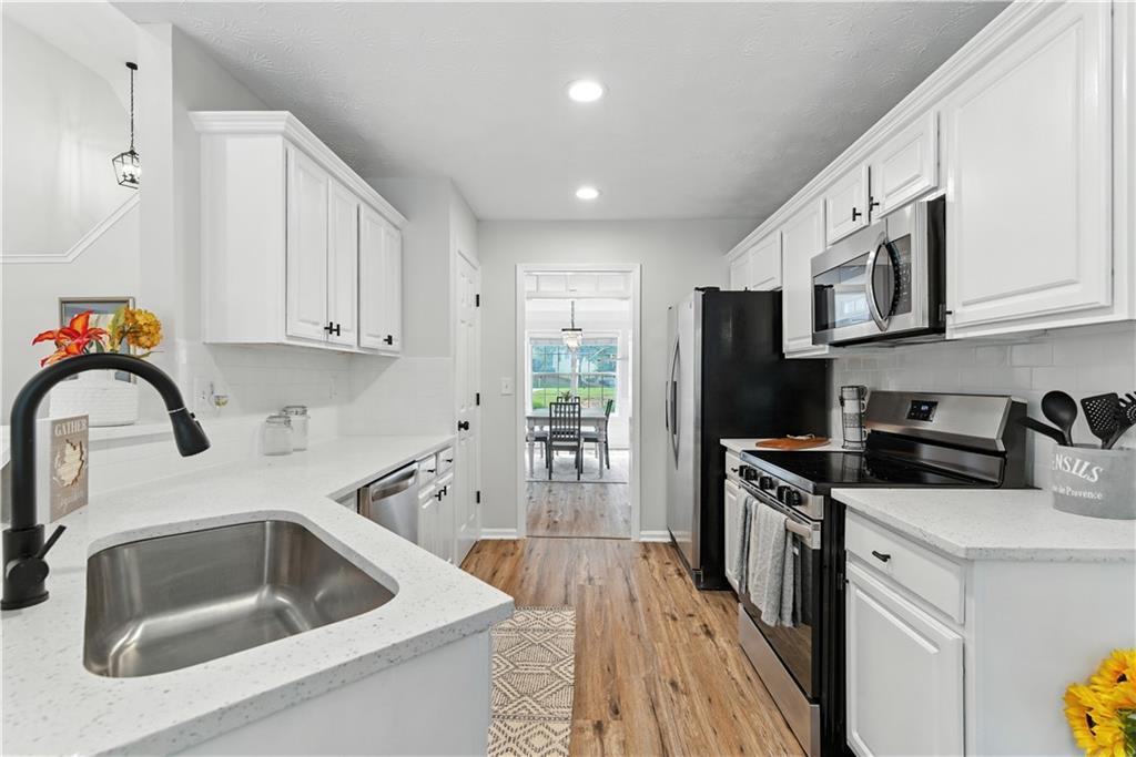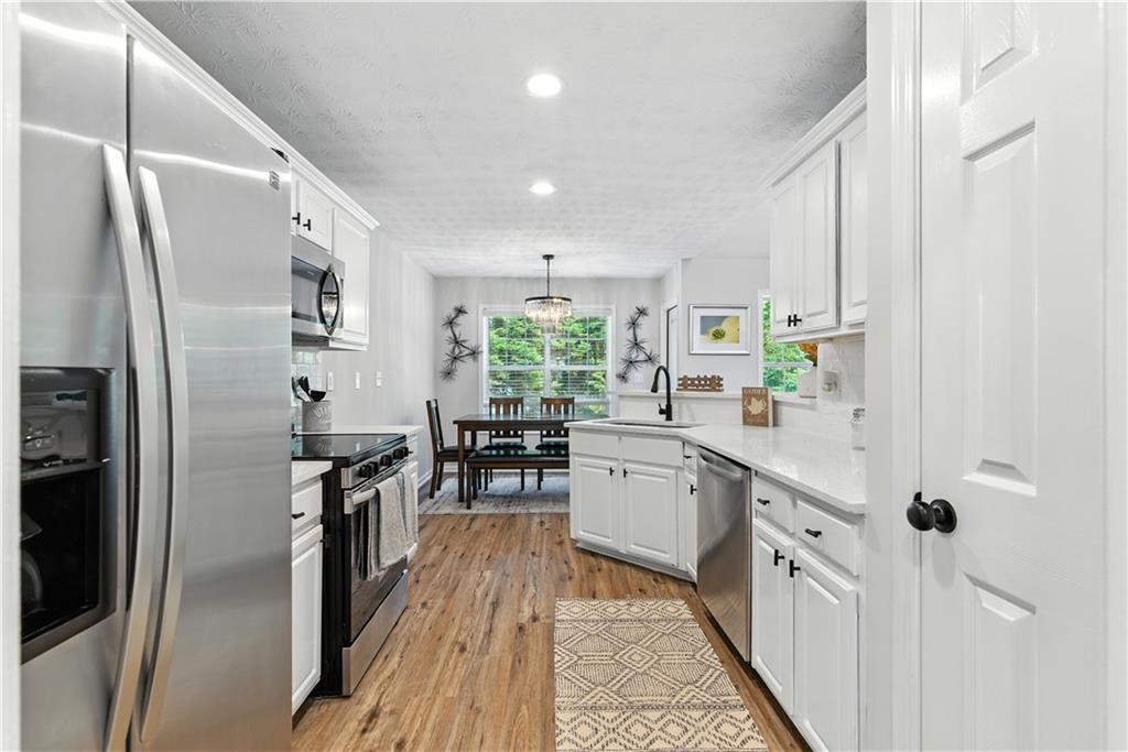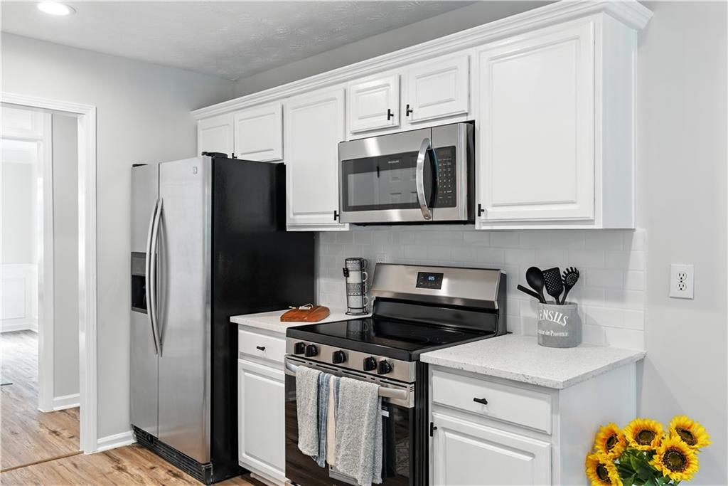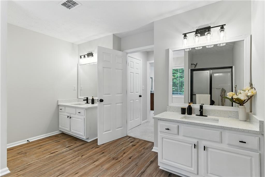 Welcome To This Stunning Residence In The Extremely Desirable Buford Area, Nestled In The Heart Of Convenience! This Updated Home Features Four Bedrooms, And Three Full Bathrooms. The Home Is Fully Finished With New Luxury Vinyl Flooring And Carpet Throughout, As Well As Fresh Paint And New HVAC Unit. The Family Room Is Complete With A Fireplace To Cozy Up And High Ceilings, Making It Visible From The Upper Level. It Overlooks The Kitchen With New Quartz Countertops And Backsplash, New Stainless Steel Microwave, Dishwasher, And Electric Stove. On The Main Level, There Are Three Bedrooms Including The Master Bedroom For Convenience. The Master Bathroom Comes With A Separate Shower And Tub, Separate His and Her Closets, And Separate His And Her Vanities. There Are Two Additional Bedrooms On The Main Level With A Full Bathroom As Well. The Laundry Room Is On The Main Level, Adjacent To The Garage. The Upper Level Is An Oversized Suite With Its Own Separate Full Bathroom. The Backyard Is Covered With Lush Greenery And Trees, Which Compliment Its Natural Beauty. The Neighborhood Provides A Community Pool And Tennis Court. This House Is A Must-See To Be Appreciated!! CORPORATE OWNER/MEMBER HOLDS GA RE LICENSE