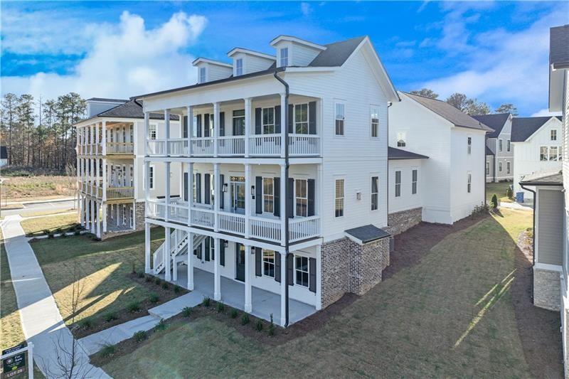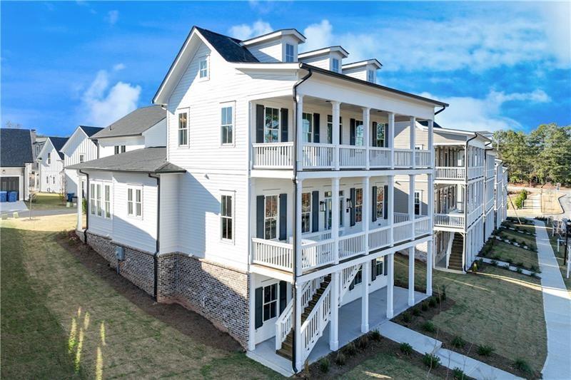 One of the distinctive "Six Sisters" at Homestead at Hog Mountain, this charming property was crafted by one of our preferred architects, Alison Ramsey, drawing inspiration from San Francisco's iconic "Painted Ladies". This adaptable plan, artfully designed for versatility, boasts 5 bedrooms and 5.5 bathrooms, and is gracefully spread across three levels of living space. Highlights include an open kitchen with a central island and dining area, a cozy study or office complete with a fireplace, a bright and airy sunroom, and a spacious family/media room equipped with a built-in kitchenette. Additionally, with its own entrance, the lower level offers private access and encompasses 2 bedrooms, 2 bathrooms and the family/media room with kitchenette. Along with the unfinished ADU space above the garage, this thoughtfully crafted layout allows the home to adapt to your needs and provides an ideal haven for multigenerational living options.