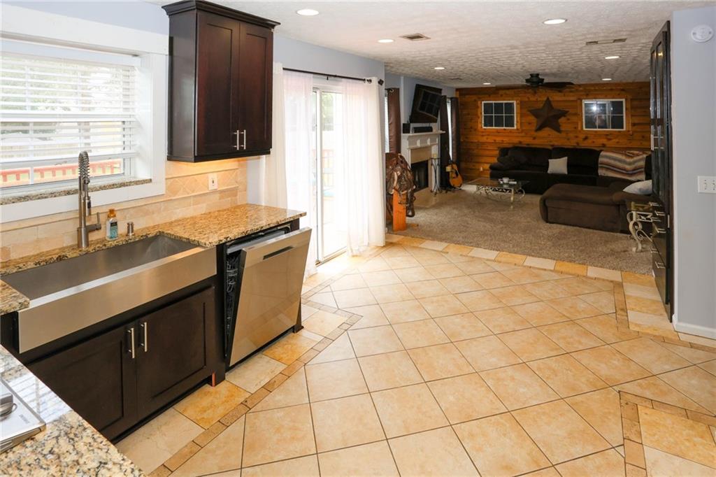 - KitchenCabinets Stain, Solid Surface Counters, Stone Counters, View to Family Room
