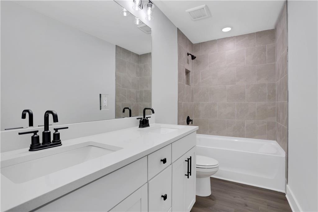 Move-in ready and beautifully designed, this Drexel floor plan with a FINISHED BASEMENT by Eastwood Homes combines thoughtful design and timeless finishes in the sought-after Twin Lakes community. The finished basement offers a private bedroom, full bath, and spacious living area—perfect for guests, entertaining, or a media retreat. The main level features an inviting office, formal dining room, and a gourmet kitchen with quartz countertops, an accent island, and a shiplap hood vent. The open-concept living room showcases a floor-to-ceiling stone fireplace with a cedar mantel, while the luxury primary suite upstairs includes a spa-like shower and upgraded finishes. Living in Twin Lakes means more than just a beautiful home—you’ll enjoy a vibrant lifestyle with amenities like sparkling lakes, a resort-style pool, clubhouse, fitness center, cabana, dog park, and plenty of green space. Conveniently located near shopping, dining, and I-85, this community offers the perfect balance of relaxation and accessibility. $6,000 towards CC with Builders Lender, Sabal Mortgage.