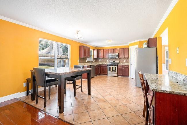 - KitchenCabinets Stain, Eat-in Kitchen, Pantry, Solid Surface Counters, View to Family Room