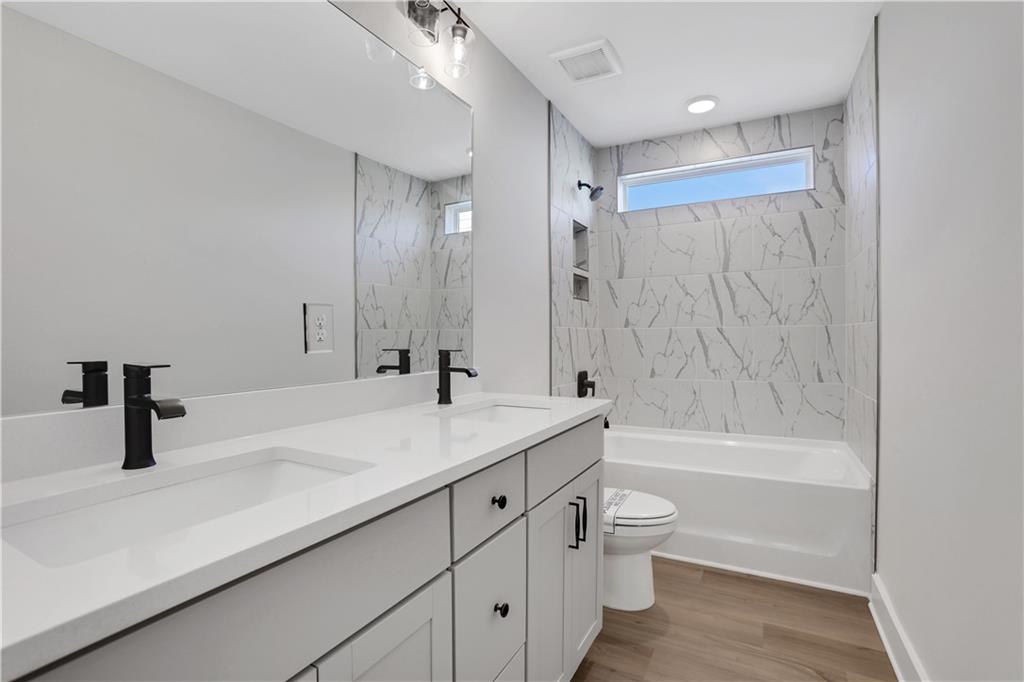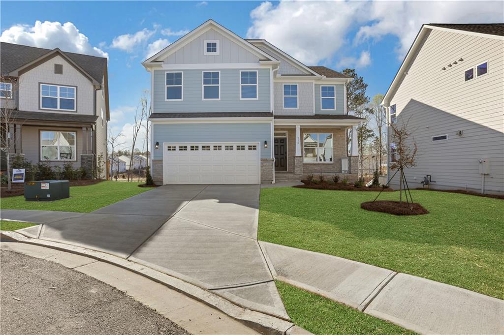 FLASH SALE! $30,000 PRICE DROP – Home must CLOSE by September 30! Move-in ready, this Drexel floor plan with a FINISHED BASEMENT by Eastwood Homes is tucked away in a private cul-de-sac with a spacious yard and tree-lined backdrop for added privacy. The finished basement offers a full bedroom, bathroom, and living area, creating an ideal retreat for guests, a game room, or additional entertaining space. The main level includes a private office, formal dining room, and a gourmet kitchen with sleek grey cabinets, quartz countertops, and a stainless steel hood vent. The living area opens to a covered back deck, perfect for outdoor dining and relaxation. Upstairs, the luxury primary suite features a spa-inspired shower and upgraded finishes, while the secondary bedrooms are impressively large with plenty of natural light. At Twin Lakes, residents enjoy resort-style amenities including lakes, a pool, clubhouse, fitness center, dog park, and more—all just minutes from shopping, dining, and I-85.