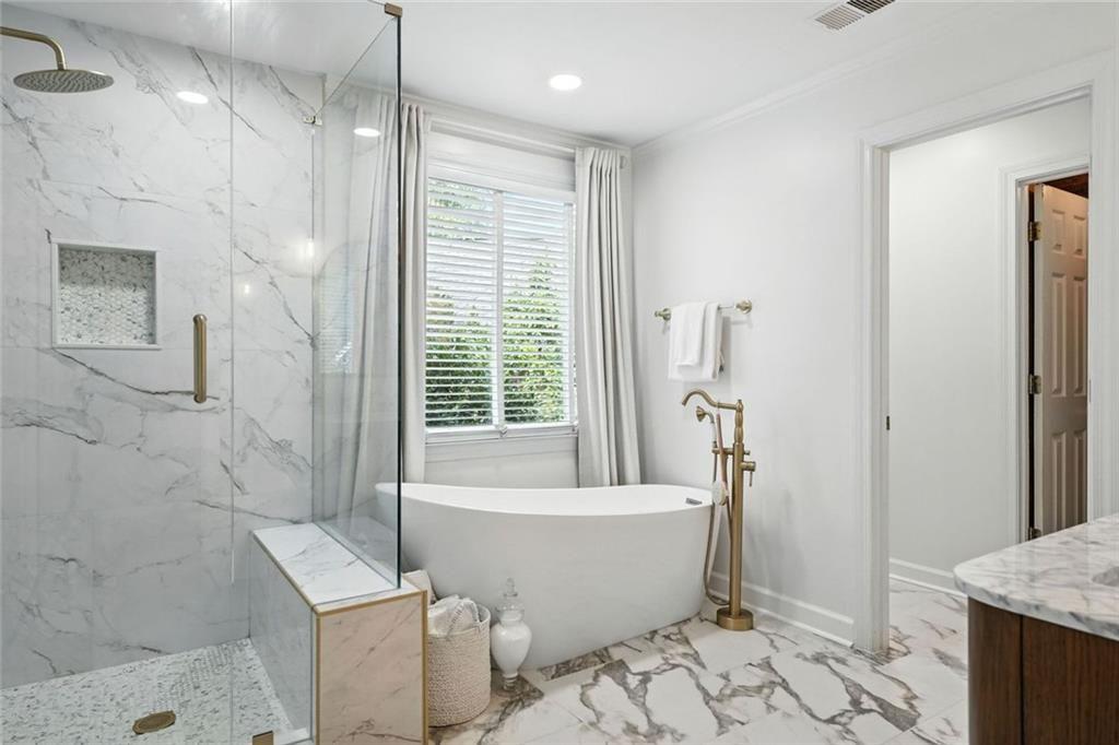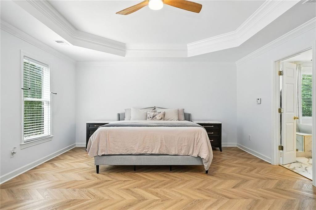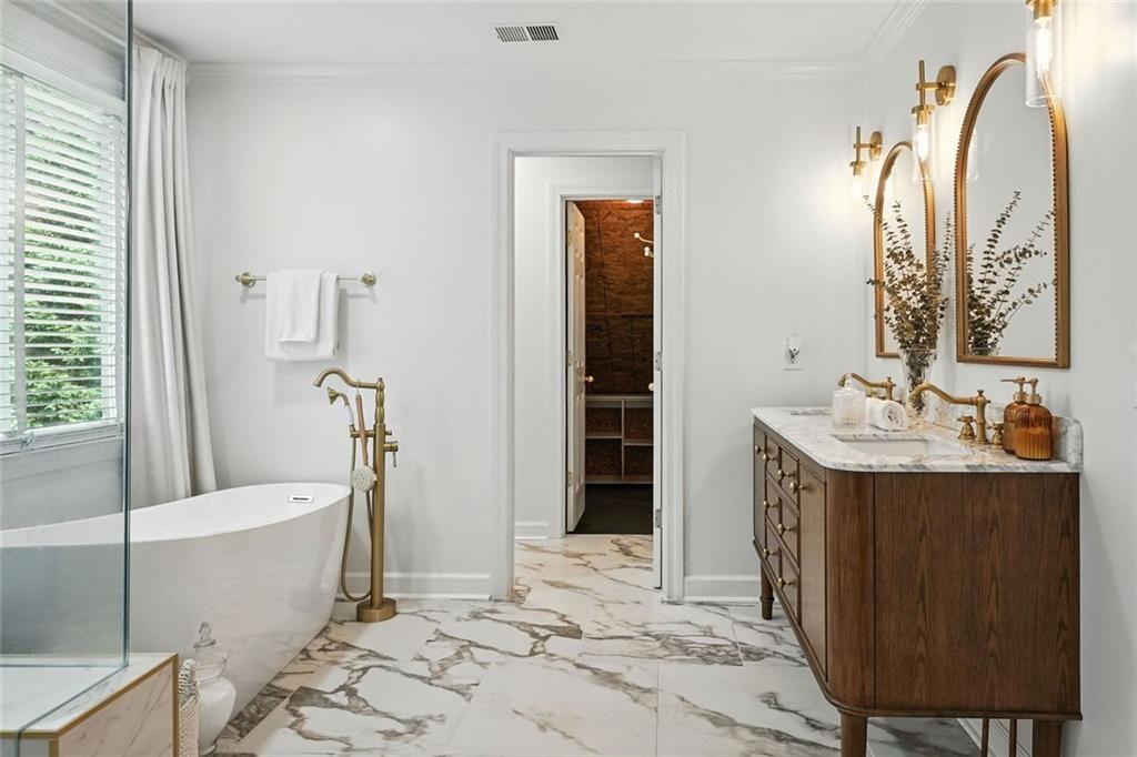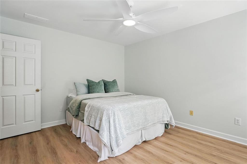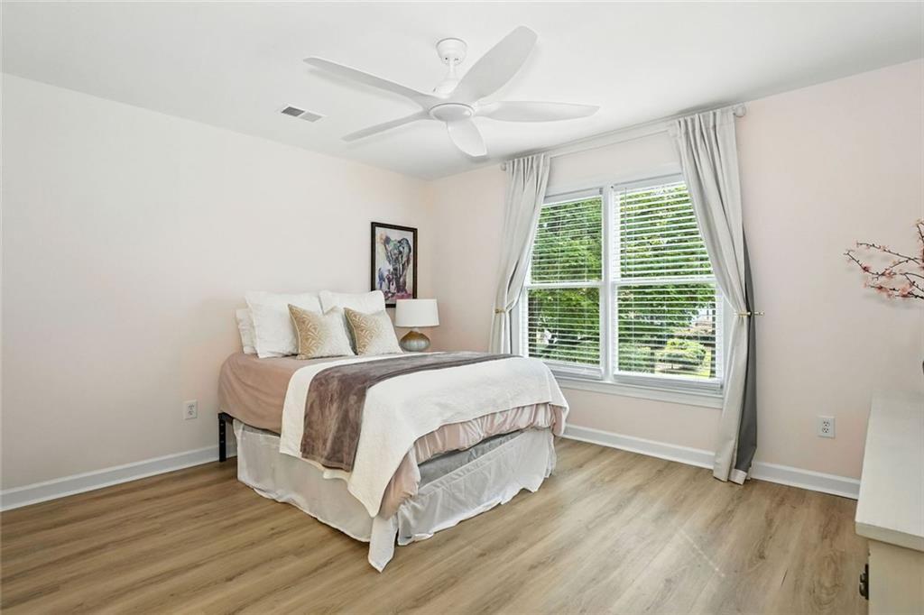 Customized upgrades and great location - perfect combination! Open floor plan allows entertaining with kitchen open to the den and sunroom/office. Bedroom (or could be used as an office) and full bathroom on main level. Stainless steel appliances includes a double oven. Gas range and huge pantry make this kitchen perfect. Enormous master suite w/ vaulted ceiling and large walk-in closets. Additional space off the bathroom can easily be converted to additional closet space. Fully updated master bathroom features double vanities and separate tub and shower. New flooring through out and recently painted completes this move-in ready home. Private backyard with a new fence installed too! This gorgeous home is conveniently located minutees away from Truist Park / Smyrna Market Village / Vinings Jubilee / I-285 and I-75.