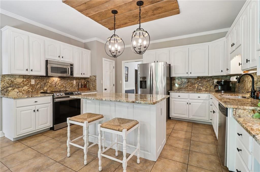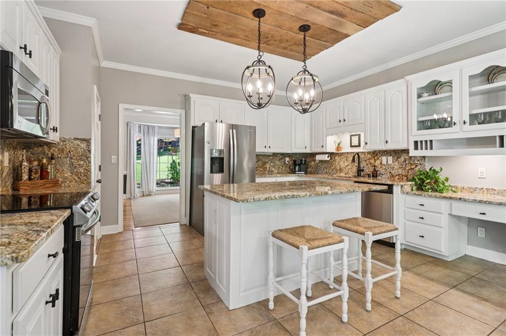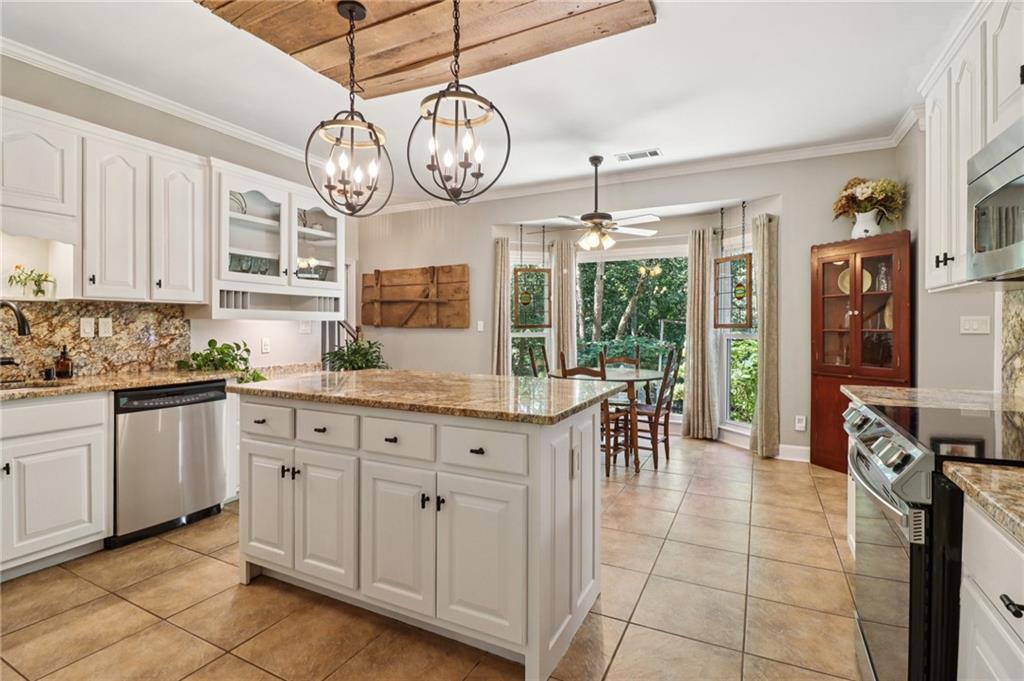 - KitchenCabinets White, Eat-in Kitchen, Kitchen Island, Pantry, Stone Counters
