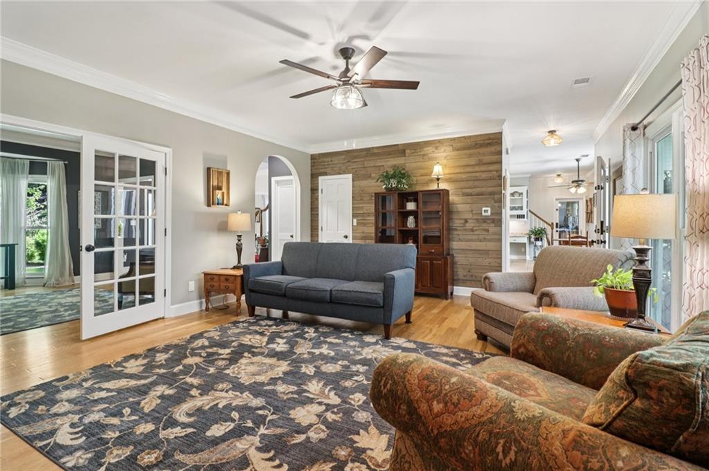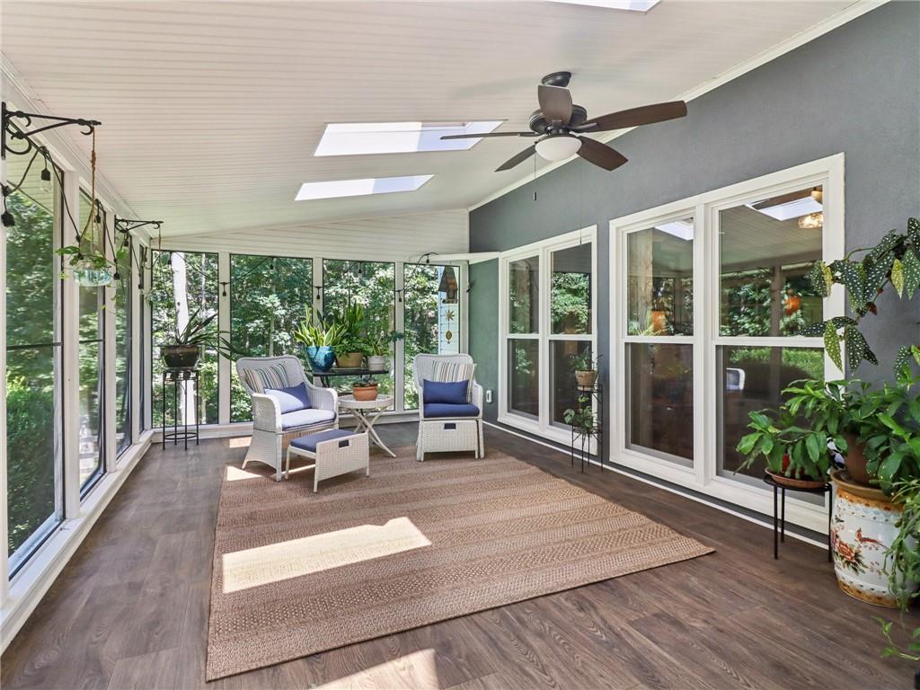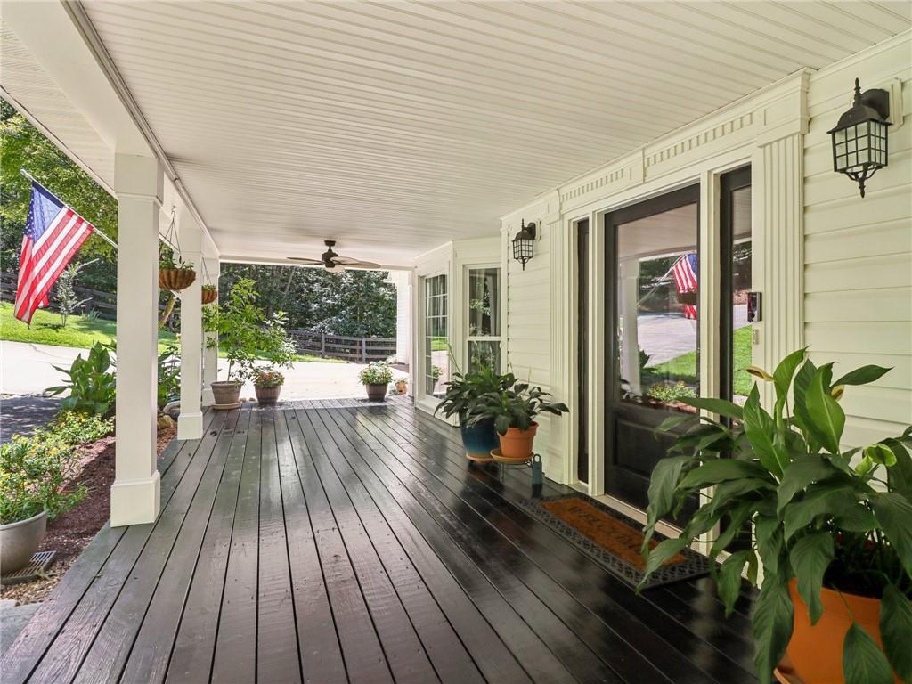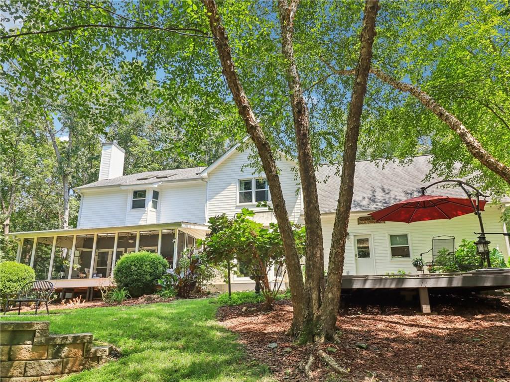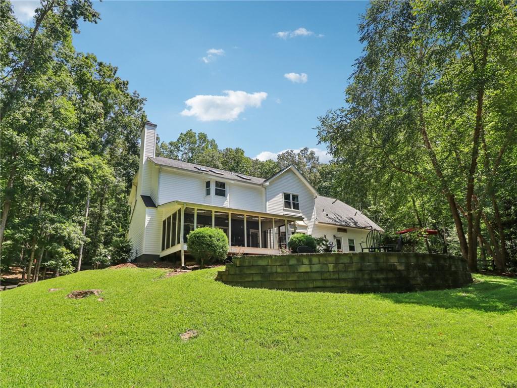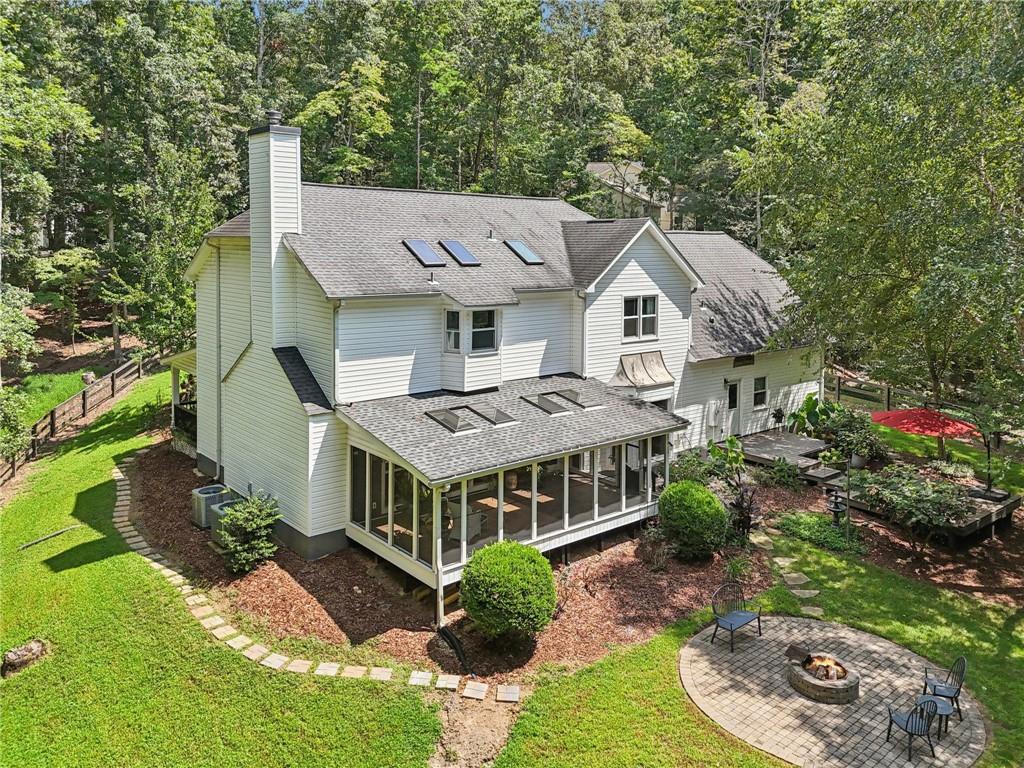 Renovated Home on 2 Acres with Southern Charm! This beautifully updated home sits on a 2-acre lot and welcomes you with a huge Southern-style front porch with 2 ceiling fans. Inside, the formal dining room is to the left and a formal living room/office to the right. The bright, open family room features a cozy fireplace and built-ins, flowing into the modern kitchen with granite counters, backsplash, island with seating, stainless steel appliances, built-in desk, and sunny breakfast room. An oversized screened porch with walls of windows and skylights offers year-round enjoyment. Upstairs, retreat to the oversized primary suite with a separate sitting area—ideal for a reading nook, media space, office, or nursery. The en-suite bath includes dual vanities, whirlpool tub, and glass shower. Two secondary bedrooms share a full bath, while the fourth oversized bedroom has built-ins and two lofts. The fenced backyard is a dream with patio, fire pit, 2 raised deck, and wooded areas beyond the fence. Updates include rebuilt decks, new outlets and switches, updated light fixtures and fans, freshly stained front porch with outdoor fan, new front door with sidelights, hot water heater, garbage disposal, bathroom exhaust fans, stove, gate opener (with warranty), over 500 feet of 3-board, 4-foot-tall wooden fencing with 2"x4" welded wire and two 6-foot entry gates with remote gate opener at driveway entry and one 6-foot entry gate in the backyard. All of this plus no HOA! Book your tour today!