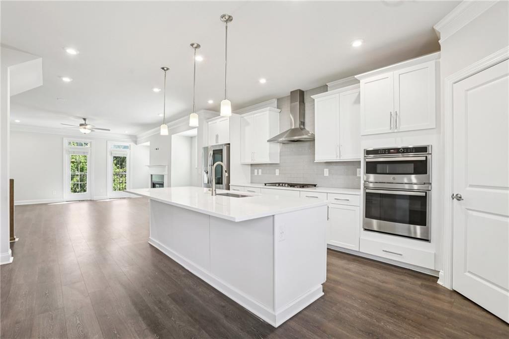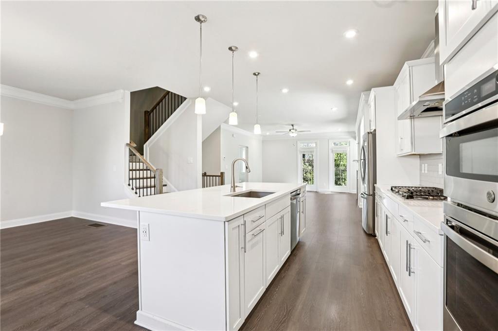 - KitchenCabinets White, Eat-in Kitchen, Kitchen Island, Stone Counters
