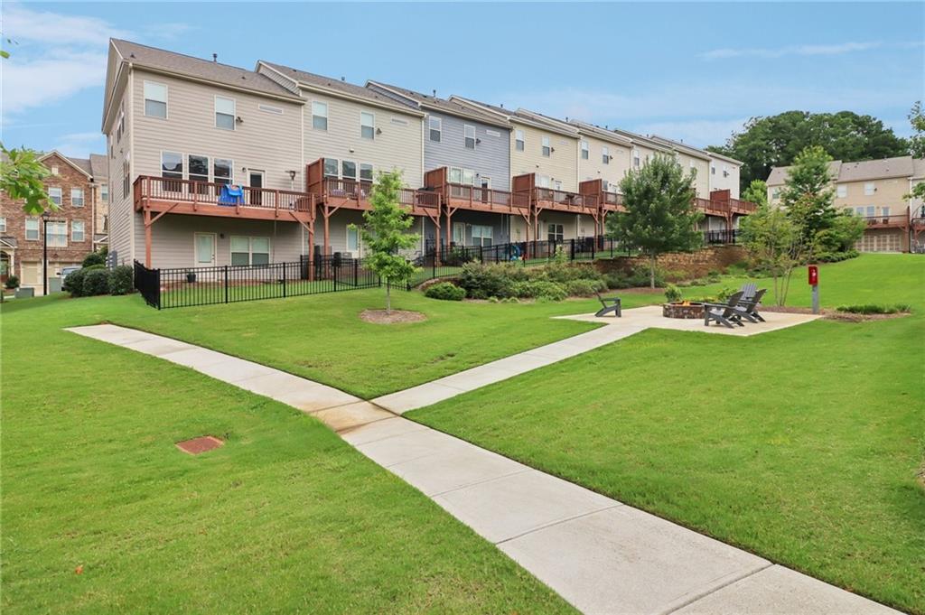 Beautiful Move-In Ready Townhome in Gated Community! This bright corner-unit townhome offers the perfect blend of style, function, and convenience. A private gated entry and front yard welcome you inside. The first floor features wood floors, a bedroom with a full bath—ideal for guests or a home office—and access to the two-car garage. Upstairs, the open-concept main living area features a light-filled living room with a fireplace, a modern kitchen with an oversized island, stone counters, tile backsplash, stainless steel appliances, and a dining area with balcony access. On the third floor, the spacious primary suite includes a tray ceiling, walk-in closet, and spa-like bath with dual sinks and an oversized fully tiled shower with bench. Two additional bedrooms, a full bath, and a convenient laundry room complete the level. Enjoy outdoor living on your private balcony or at the community greenbelt with fire pit and pool. Located near shopping, dining, and with easy highway access, this home truly has it all!