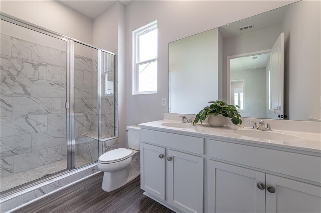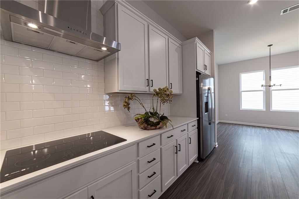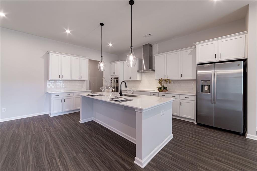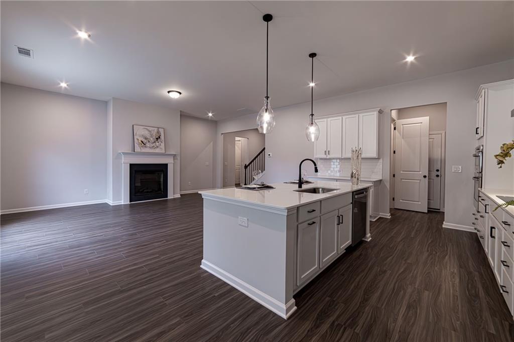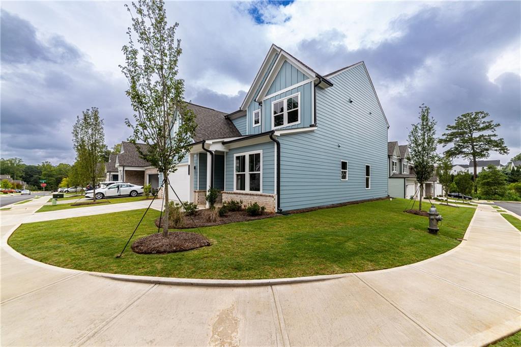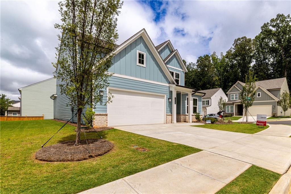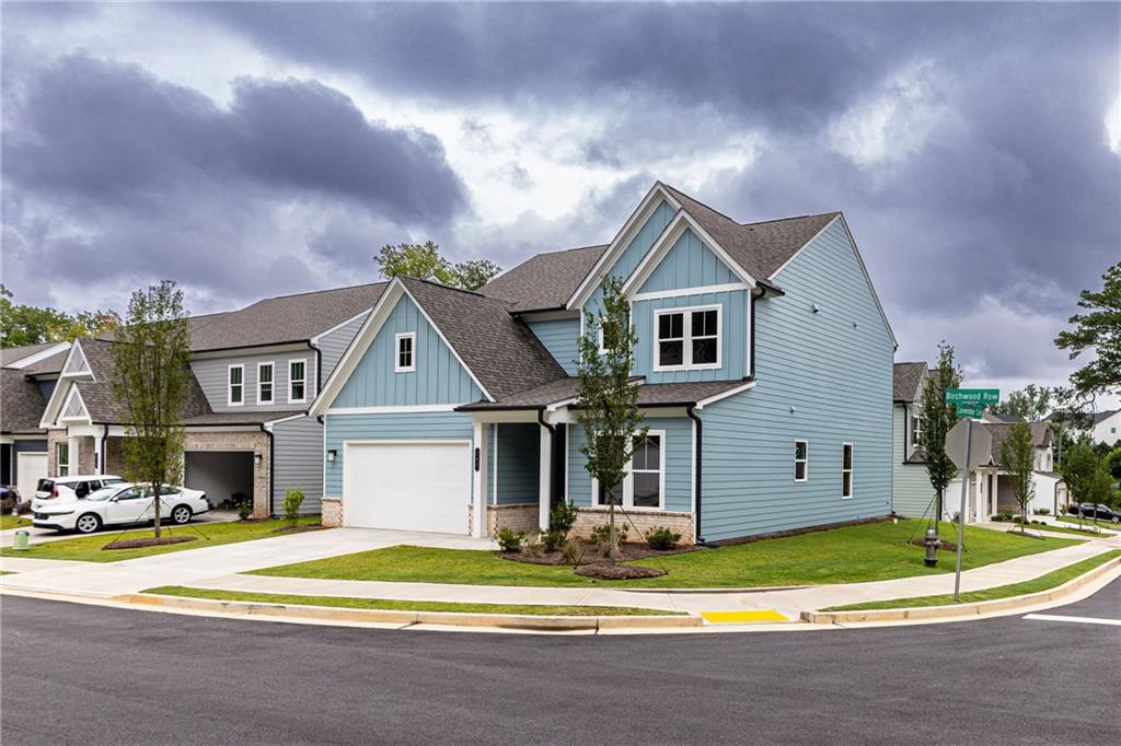 212 Birchwood Row is a Brand-new, never lived in, and utterly stunning, this two-story corner lot showpiece in Holly Springs showcases the expansive Kendall floor plan—the largest in the community—with a versatile layout offering 4 bedrooms and 3.5 baths, designed to impress from the moment you step inside. Sunlight pours through oversized windows, illuminating the open family room anchored by a sleek fireplace with remote control and a designer kitchen that is every entertainer’s dream, complete with a massive quartz island accented by three striking glass pendants, crisp white cabinetry, and stainless steel appliances including the refrigerator. The main level offers a secondary owner’s suite with a spa-inspired bath featuring dual vanities and a tiled shower, perfect for guests, along with a private study or office and a stylish half bath for convenience. Upstairs, a spacious loft provides endless flexibility for a media lounge, playroom, or second living space, while the oversized owner’s retreat delivers the ultimate escape with a freestanding soaking tub, a separate tiled shower, dual vanities, and an oversized walk-in closet designed to impress. Two additional bedrooms share a thoughtfully designed bath with double vanities, and the laundry room is smartly placed on this level to simplify daily living. With abundant closet space, a private back patio, and a two-car garage, every detail of this home has been carefully crafted for style and functionality. Set within the sought-after Enclave at Edgewater, you’ll enjoy the benefits of top-rated Cherokee County schools and an amenity-rich community. Just minutes from I-575, Downtown Woodstock, Canton Marketplace, Hickory Flat Commons, Sequoyah Park, and the exciting new Holly Springs Town Center with its upcoming amphitheater, dining, shopping, and entertainment, this address blends small-town charm with modern convenience. Sophisticated, versatile, and undeniably elegant, 212 Birchwood Row is more than a home—it’s a lifestyle waiting for its very first owner.