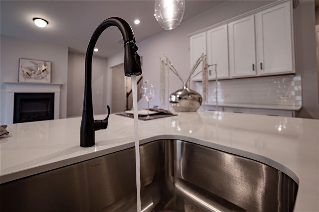 - KitchenBreakfast Bar, Breakfast Room, Cabinets White, Pantry, Stone Counters, View to Family Room