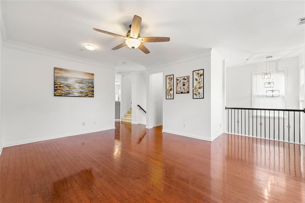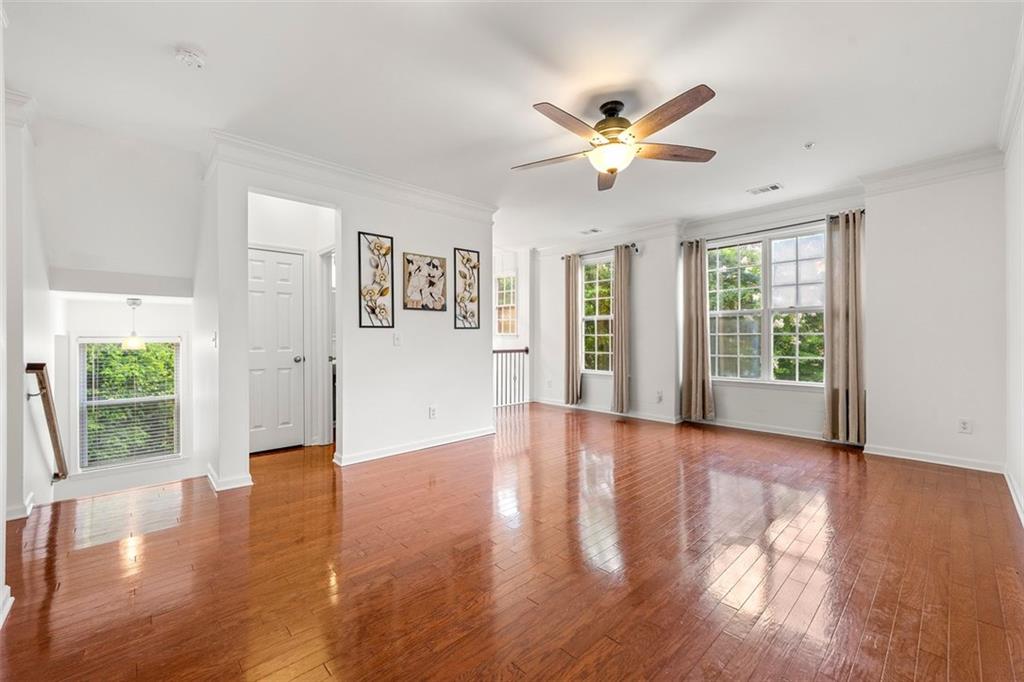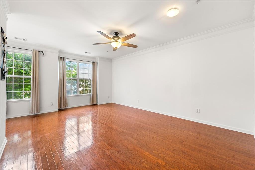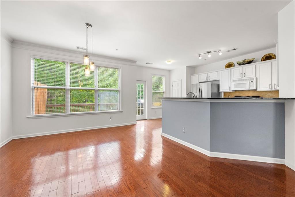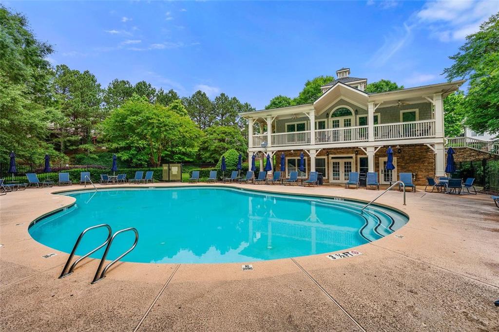 15 minutes from Truist Park. 20 minutes from Atlanta. This stylish 3-bedroom, 3.5-bathroom townhome is very spacious with three levels of living space. The open-concept main floor features hardwood floors, a cozy fireplace, and tons of natural light. The updated kitchen boasts granite countertops and bright, modern cabinetry. Each bedroom includes its own private bath, with a spacious suite on the fully finished lower level-perfect for guests, a home office, or flex space. Enjoy resort-style amenities including a pool, fitness center, and tennis courts. All this, just minutes from shopping, dining, and major highways. Move-in ready! New Carpet throughout(not pictured)