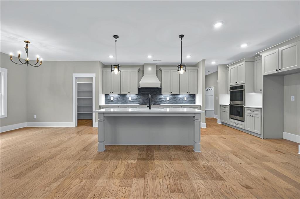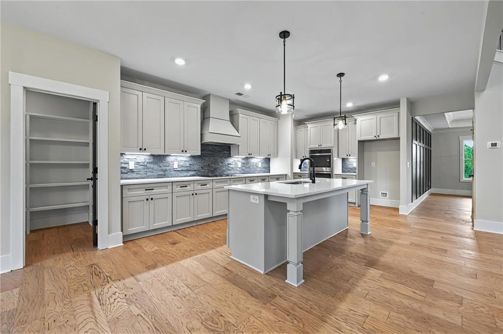 - KitchenBreakfast Room, Cabinets Other, Kitchen Island, Pantry, Pantry Walk-In, Solid Surface Counters, View to Family Room