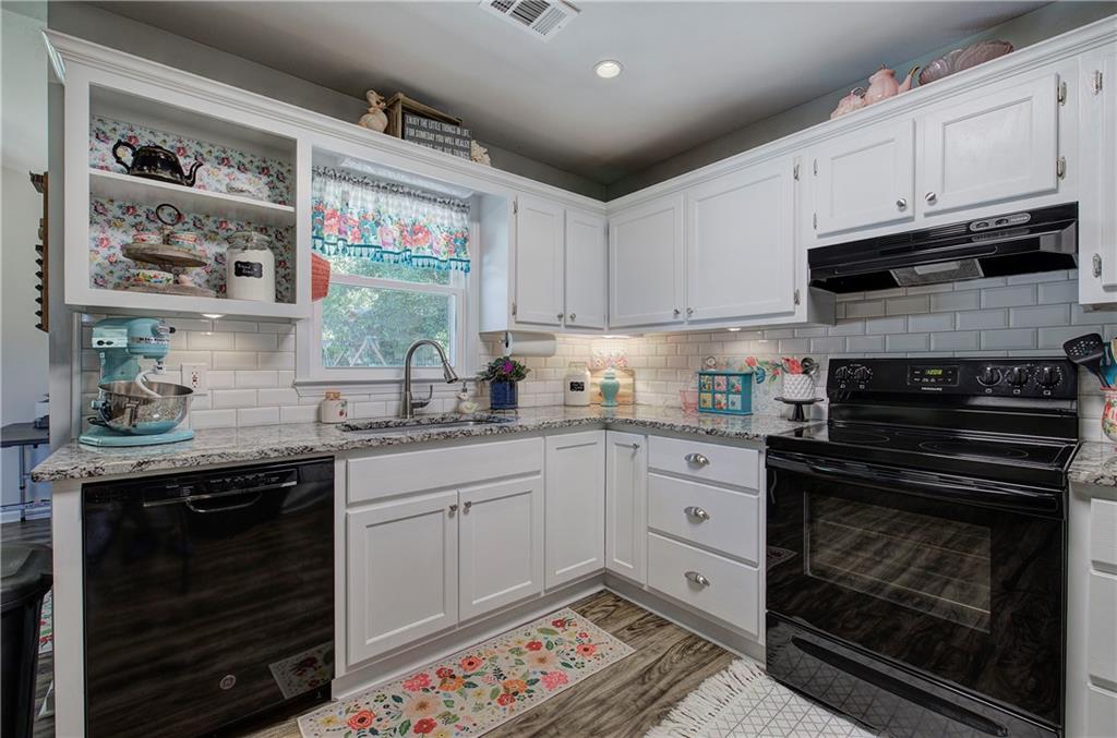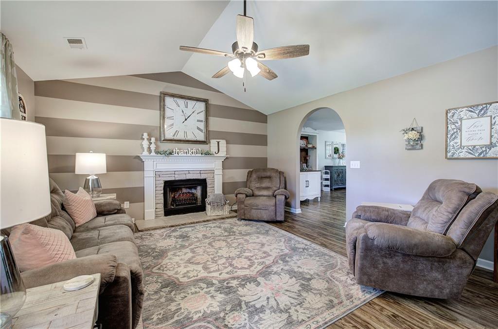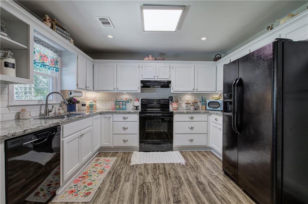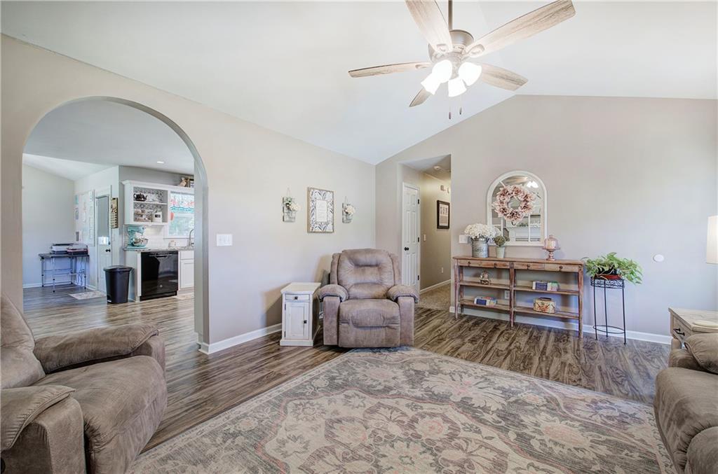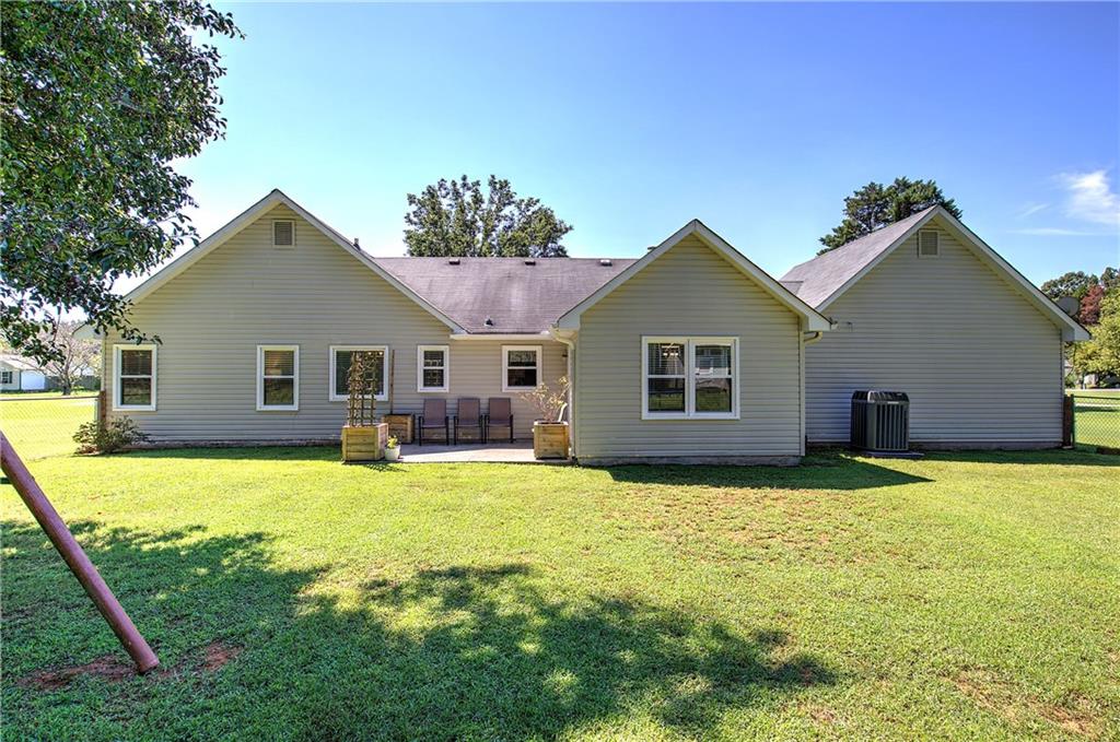 Welcome home to this beautifully maintained ranch home. Covered wrap around front porch with swing and over head fan, gives you easy access to front yard and garage/driveway area. Open floor plan gives you family room space that flows into an over sized kitchen and dining area, upgraded counter tops, back splash, lower cabinets, lighting, paint and flooring. Large laundry room off the kitchen area is large enough for a ironing area. Bathrooms have upgraded counter tops, cabinets, faucets and fixtures. Home is on city sewer. Backyard is fenced with a storage building for lawn equipment or a cute She Shed, play area for the children with jungle gym and swings. This beautiful home has something for the whole family.