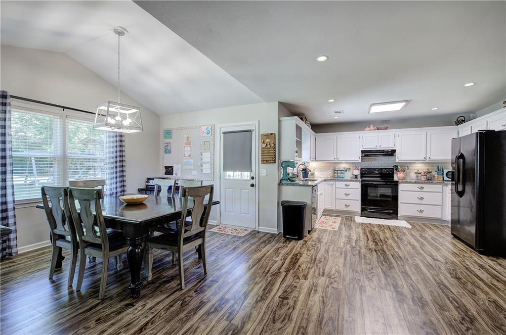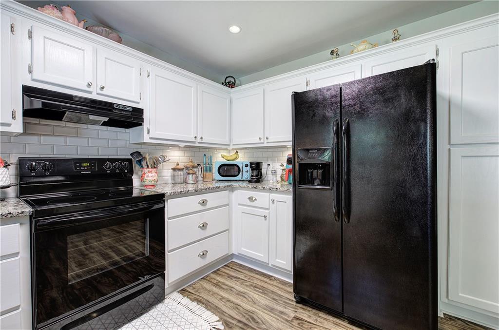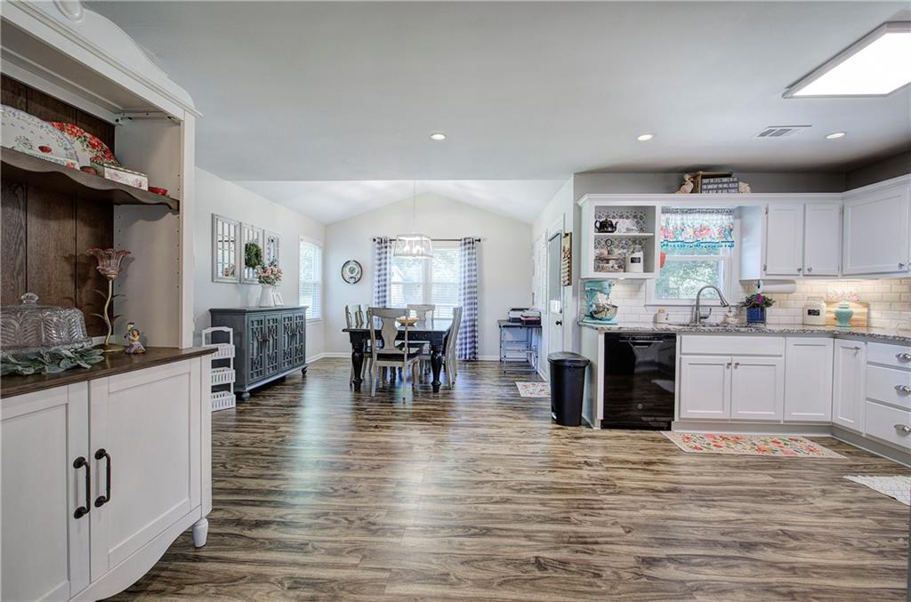 - KitchenBreakfast Room, Cabinets White, Country Kitchen, Pantry, Solid Surface Counters, Stone Counters, View to Family Room