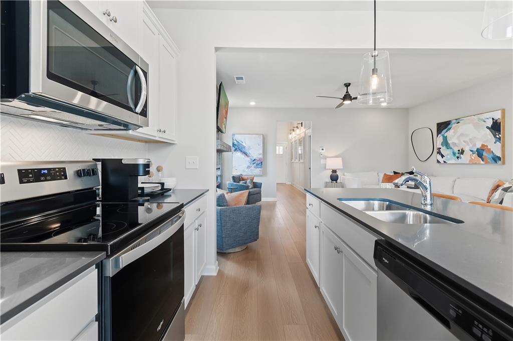 The Millhaven floor plan, Homesite 218, at Abbotts Crossing offers a perfect blend of thoughtful design and spacious comfort. The open-concept kitchen is a true centerpiece, featuring a large island with a clear view of the dining area and family room—making it ideal for entertaining and family gatherings. On the main level, a private suite provides convenience and comfort with its own en suite bath complete with a dual vanity, walk-in shower, and generous closet space. Upstairs, the primary suite serves as a peaceful retreat with soaring volume ceilings, an expansive walk-in closet, and a spa-inspired en suite showcasing dual vanities, a soaking tub, and a walk-in shower. The upper level also includes two additional bedrooms, a versatile loft area that can serve as a home office or second living space, and the convenience of an upstairs laundry room. Welcome to Abbotts Crossing, where modern living meets Southern charm in the heart of Conyers, GA. Located just minutes from I-20, downtown Covington, and the Shops at Stonecrest, you’ll enjoy easy access to shopping, dining, and entertainment. Don’t miss your chance to call Homesite 218 your new home! Please note: If the buyer is represented by a broker/agent, DRB REQUIRES the buyer’s broker/agent to be present during the initial meeting with DRB’s sales personnel to ensure proper representation. If buyer’s broker/agent is not present at initial meeting DRB Group Georgia reserves the right to reduce or remove broker/agent compensation.