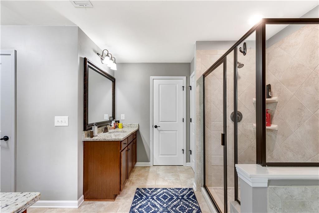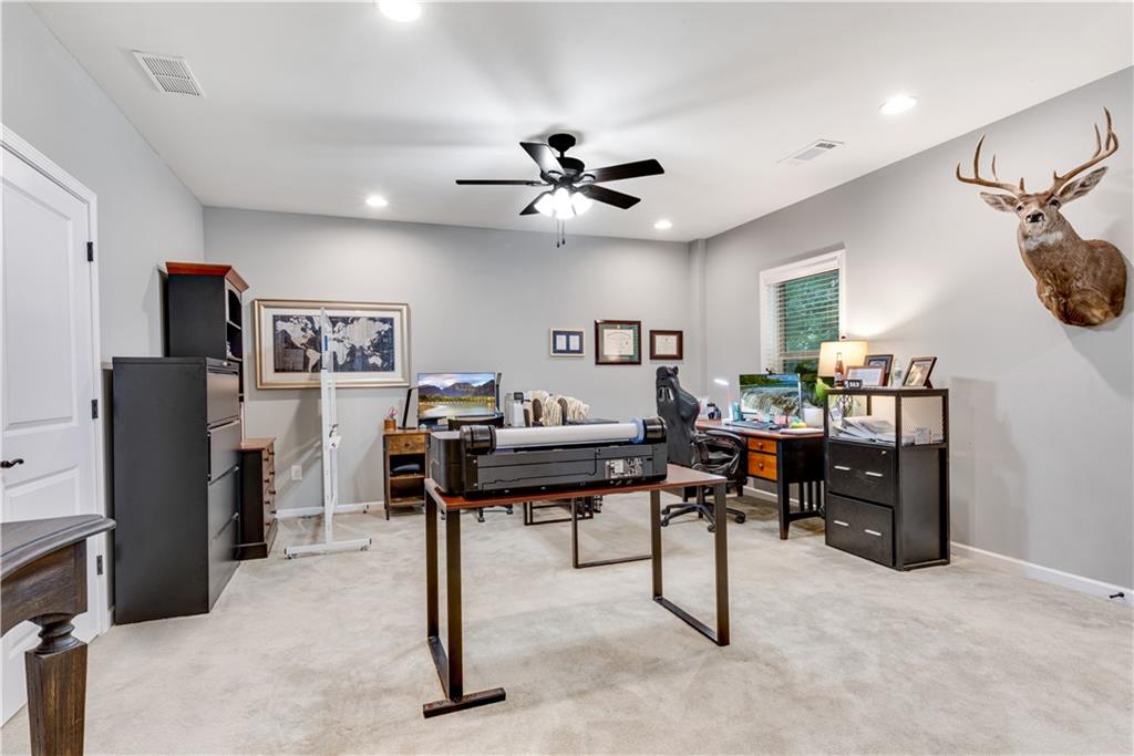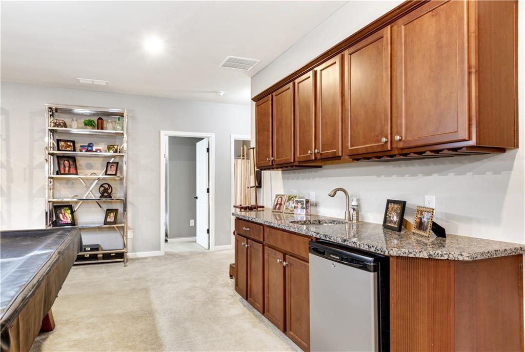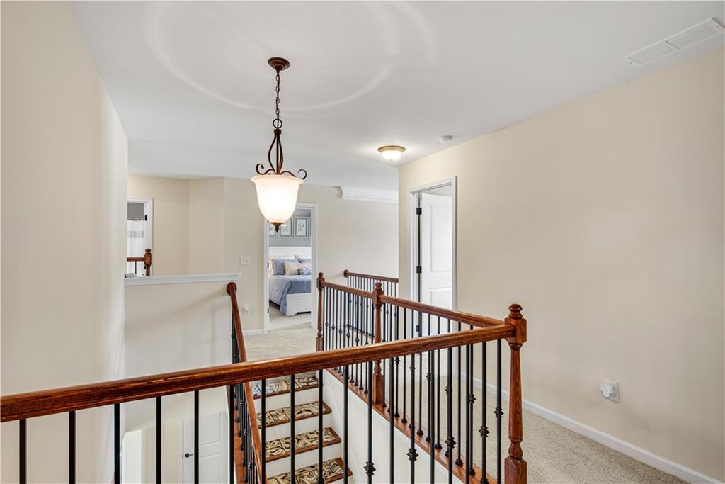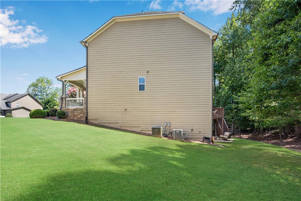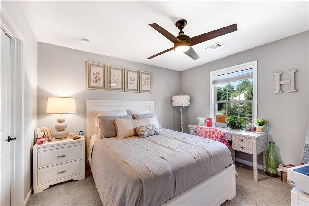 Tucked away on a quiet cul-de-sac in a gated community, this stunning 2-story Craftsman home offers the perfect blend of elegance, space, and comfort. Boasting 6 bedrooms and 4 full bathrooms, a 3-car garage, and a fully finished terrace level, this home has room for everything and everyone. Step into a grand 2-story foyer that leads into a thoughtfully designed main level. You'll find a private office, a formal dining room perfect for entertaining, and an open-concept layout connecting the spacious great room, breakfast area, and kitchen. The kitchen is a chef’s dream with richly stained cabinetry, granite countertops, island, and walk-in pantry. Upstairs features 4 generously sized bedrooms, including a luxurious oversized primary suite with his-and-hers walk-in closets. The spa-like en-suite bath includes dual vanities, a soaking tub, and a separate shower bathed in natural light. Bedroom 2 features its own walk-in closet, while bedrooms 3 and 4 share a convenient Jack-and-Jill bath. A separate elevated loft space provides the perfect spot for a second office, playroom, or media room! The finished terrace level adds even more living space, complete with a bedroom, full bathroom, kitchenette, and a large entertainment area ideal for hosting guests or relaxing with family. There is also plenty of storage in the unfinished space. Enjoy peaceful mornings and evenings on the rocking-chair front porch, and experience wooded privacy in the backyard. This home is located in a gated and well-maintained community with excellent schools nearby. As an added bonus, internet and basic cable are included with HOA fees. Close to shopping and restaurants!