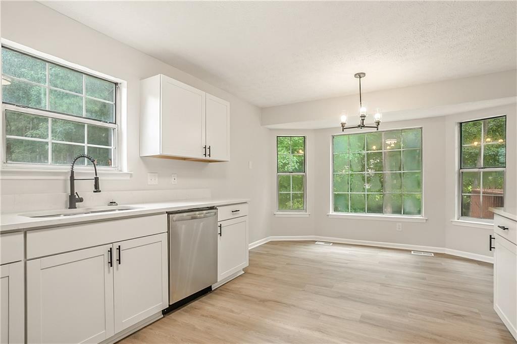 - KitchenCabinets White, Eat-in Kitchen, Pantry, Solid Surface Counters