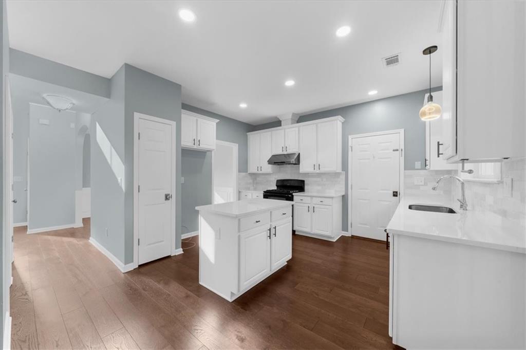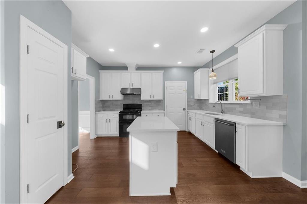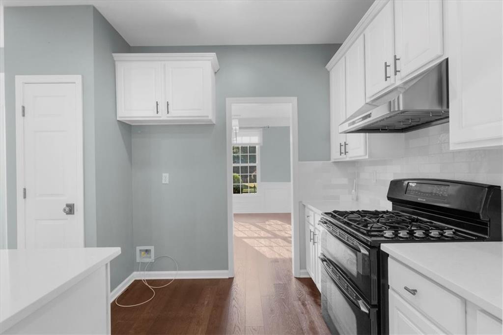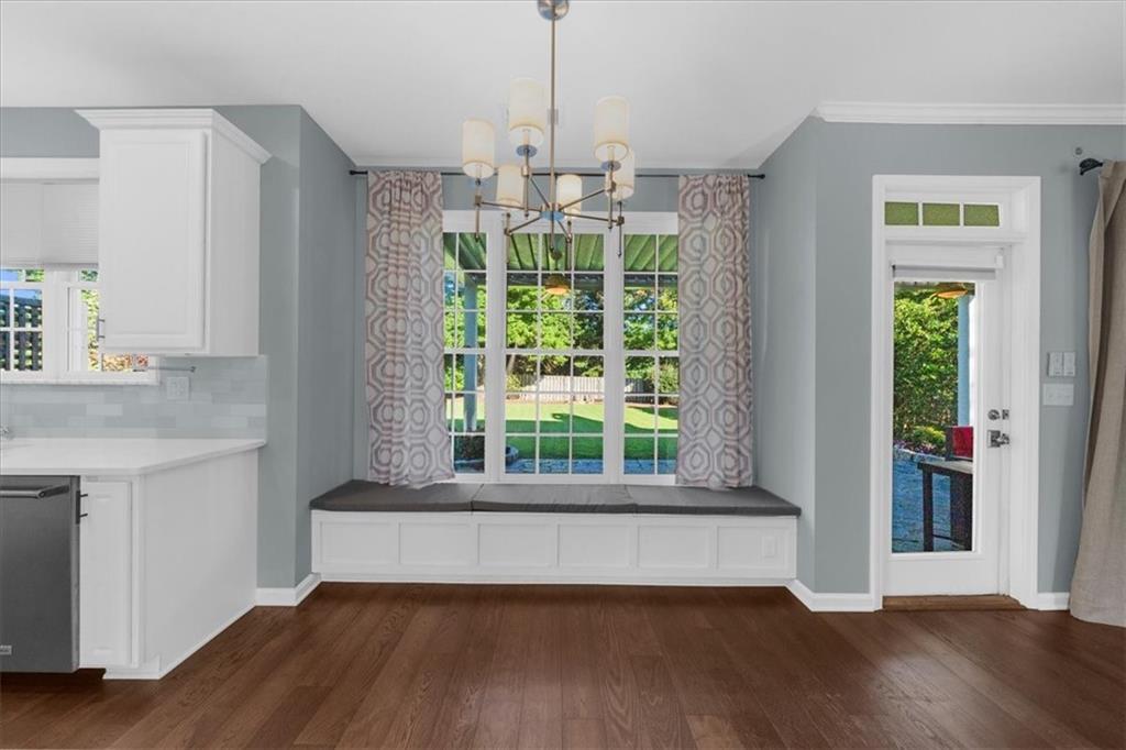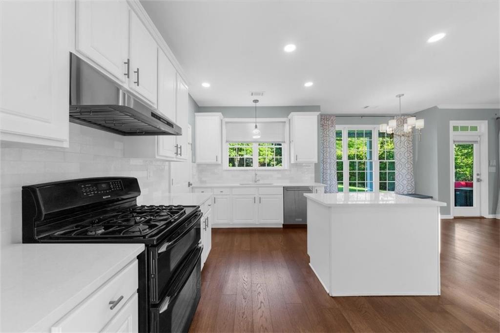 - KitchenBreakfast Room, Cabinets White, Eat-in Kitchen, Kitchen Island, Pantry, Solid Surface Counters, View to Family Room