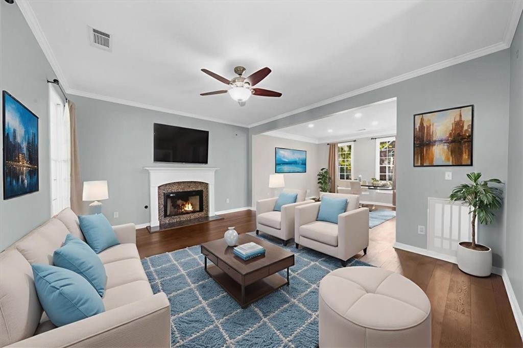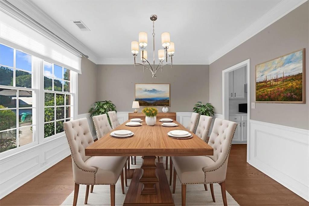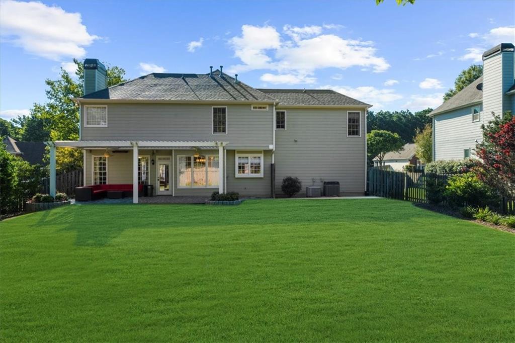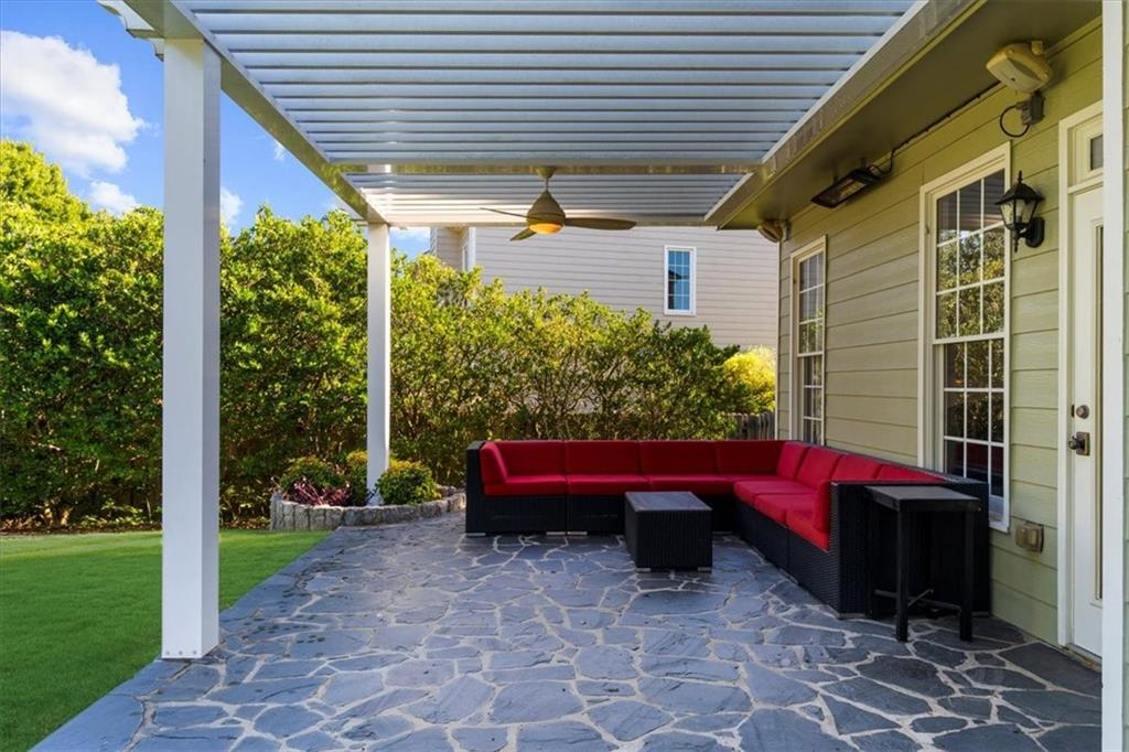Beautifully updated 4-bedroom home in Sugar Hill’s Twin Creeks Swim/Tennis Community. Perfectly situated just minutes from grocery stores, local restaurants, highways, and all your daily conveniences, this home blends comfort, functionality, and modern upgrades throughout. The main level boasts a welcoming floor plan, including a freshly renovated half bath, a bright eat-in kitchen with Quartz countertops, new stainless sink, and updated backsplash with opal polish ceramic tile. The main level is home to a dining room, living room, and family room with access to the garage from the kitchen. The exterior patio is a showstopper, as you enjoy year-round outdoor living with the state-of-the-art Equinox Motorized Patio Roof system, providing shade or sunshine at the touch of a button. The Natural Slate patio has a wall-mounted heater and is wired for outdoor speakers, perfect for entertaining or relaxing. All of this with a wood privacy fence enclosing the beautifully landscaped level backyard. Upstairs, you’ll find brand-new LVP flooring (no carpet!) and a luxurious owner’s suite featuring a walk-in closet with custom organization, and a spa-inspired en-suite with a stunning shower, private water closet, and elegant double vanity. The full secondary bath has all new and updated fixtures. The garage is equipped with built-in shelving and a dedicated Ev/Telsa charging outlet! This home is conveniently located just minutes to I-85, I-985, and 400, and Lake Lanier! Welcome home!
