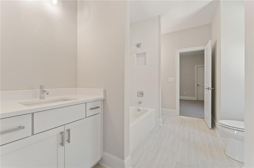 Our Wesleyan floor plan is our owner's-suite-upstairs plan with four bedrooms upstairs and one bedroom and full bathroom on the main level, for a total of five bedrooms. Clients love the open feel of the main level and the ample-sized bedrooms upstairs. This home offers some incredible finish options: quartz countertops, high-end Shrock Entra cabinets, custom tile, and a freestanding soaking tub in the owner's bath. Home is currently under construction with a late October/early November delivery time frame. NOTE: PHOTOS ARE NOT OF SUBJECT HOME, BUT OF SIMILAR HOME.