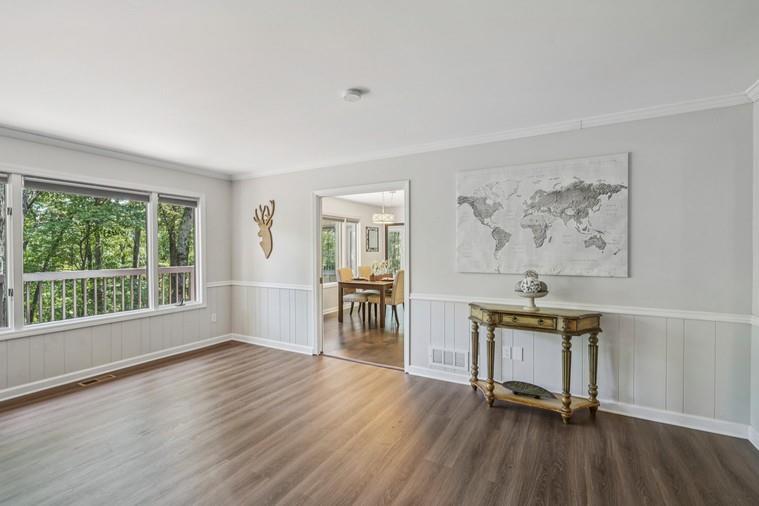 Owners are sorry to leave!! A New Job Opportunity offers the lucky new Buyers the chance to come and experience the best of Big Canoe living at 2630 Wilderness Parkway, where timeless character meets thoughtful modern updates. This large (3,600+ sq ft) mountain bungalow-style residence offers 4 bedrooms and 3.5 baths, nestled on a picturesque 1.39-acre corner lot wrapped in peaceful wooded surroundings. Circular Driveway leads past the detached two car garage and welcomes you to step inside to find a beautifully updated kitchen, thoughtfully redesigned for modern living with upgraded finishes and layout improvements. The enormous living room shines with loads of natural light and brand-new Luxury Vinyl Plank flooring, blending elegance with durability. Entertain in style around the brick fireplace, or retreat to the sunroom—perfect for work, reading, or soaking in panoramic seasonal mountain views. The lower terrace level offers flexible space with two guest bedrooms, two bonus rooms, and a dedicated workshop tailored to your lifestyle needs. Outside, expansive private decks beckon for casual gatherings or quiet morning coffee in the woods with mountain vistas as your backdrop. With access to private gated community amenities—Spectacular newly renovated clubhouse, fitness center, dog park, pool, tennis, marina, beach, playgrounds, bocce ball courts, 27 holes of championship golf and more—every day feels like a wonderful vacation. This home effortlessly blends functional improvements with scenic appeal. Ideally priced and perfectly positioned to offer great access to the Main Gate and to the Amenities, it’s ready to welcome its next chapter of living and entertaining. Agents outside of the gates must bring copy of real estate license for Big Canoe gate access. A mandatory $4,500.00 capital contribution fee paid by the purchaser to the Big Canoe Property Owners’ Association will be due at closing + $425 admin fee + $200 water transfer fee. Seller customarily pays $200 Big Canoe Company waiver fee. Pursuant to Article II, Section 1, Paragraph bb of the Class “A” Covenants for the Big Canoe community, all property transfers are subject to the Big Canoe developer’s right of first refusal.