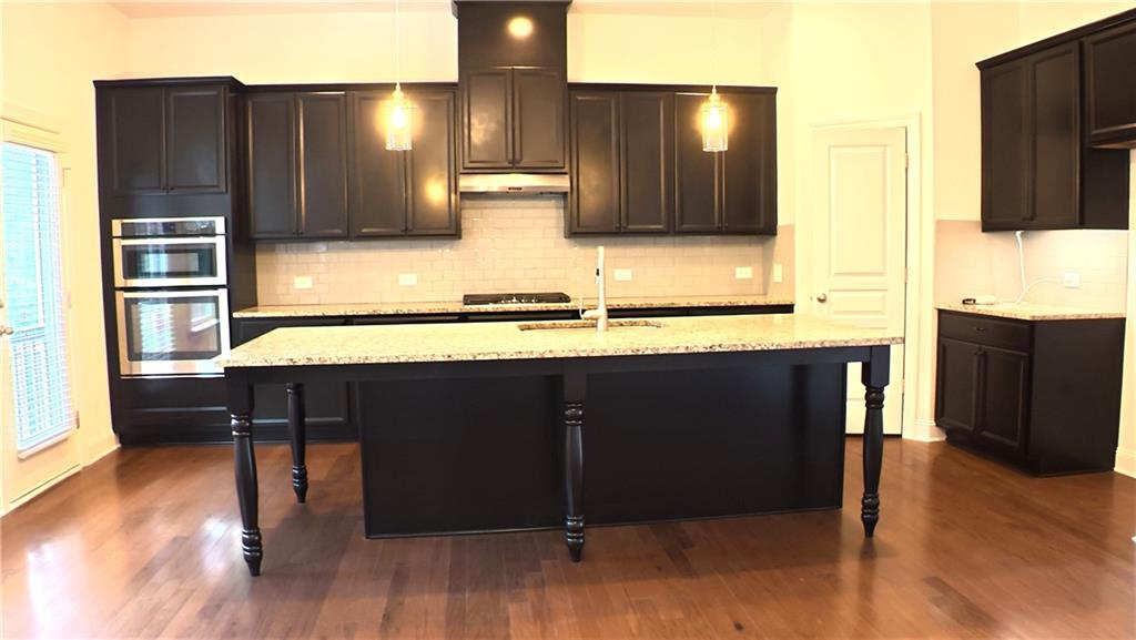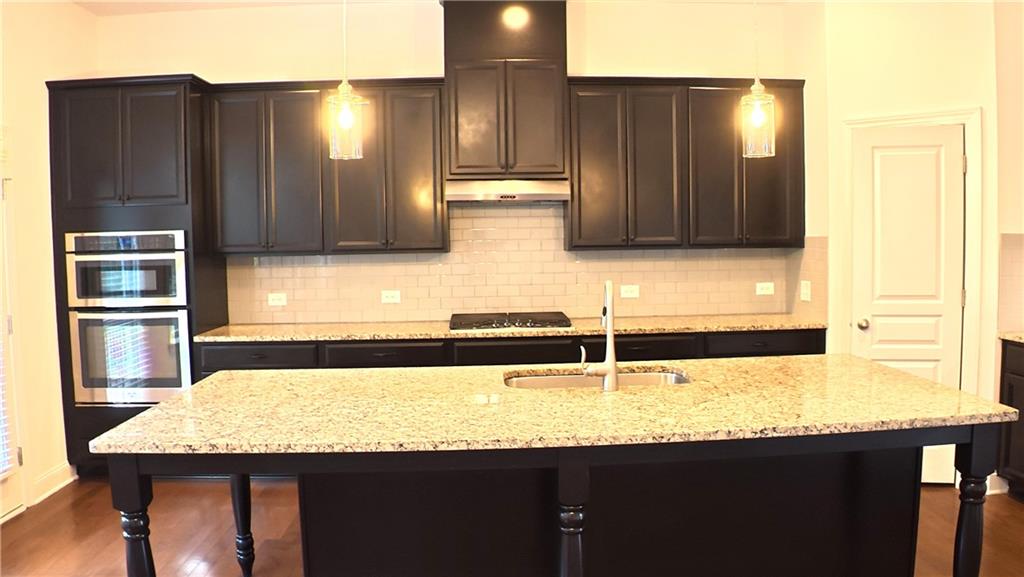 - KitchenCabinets Stain, Kitchen Island, Pantry Walk-In, Stone Counters, View to Family Room