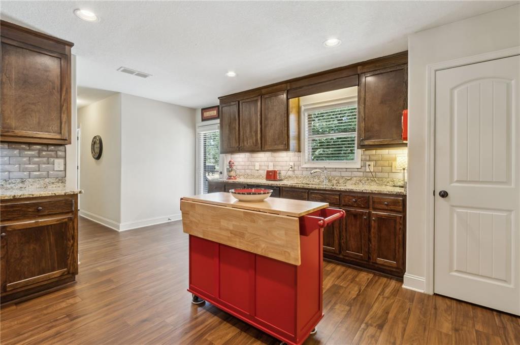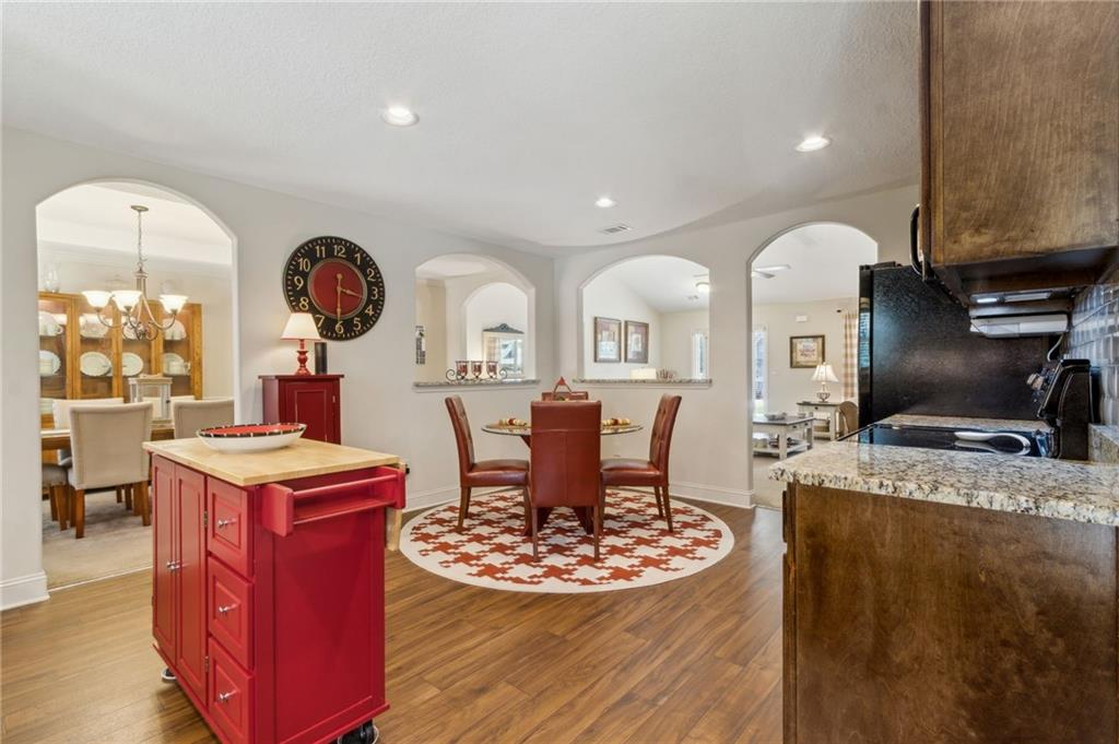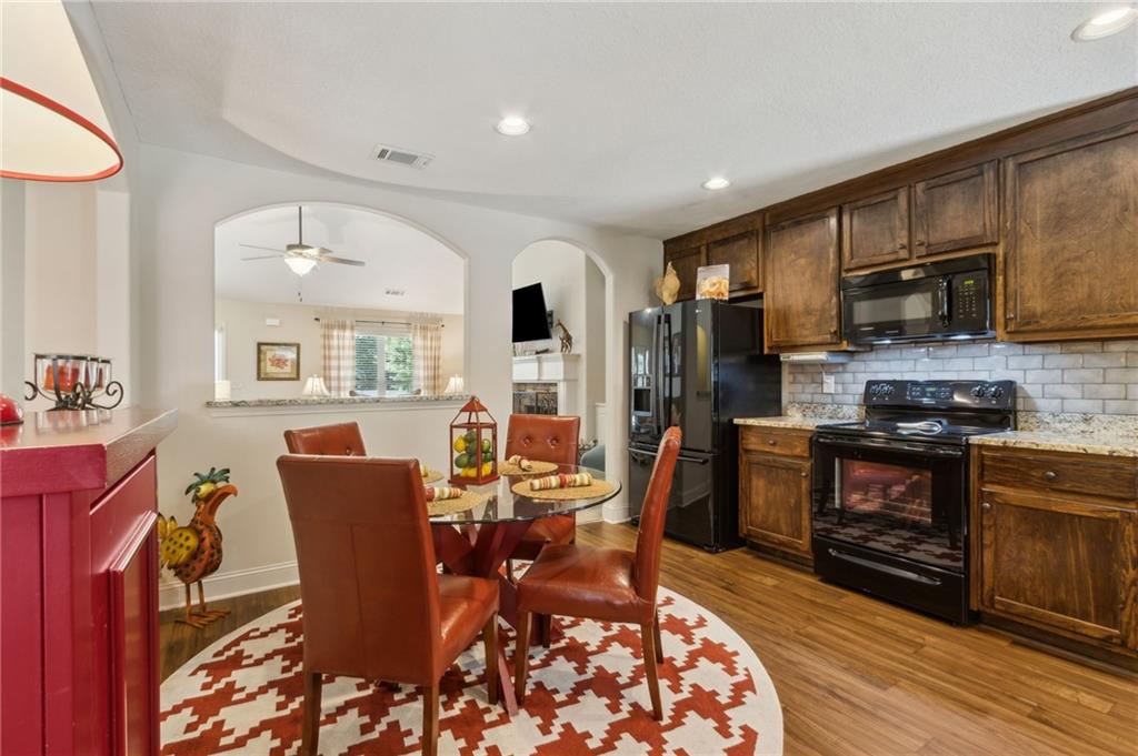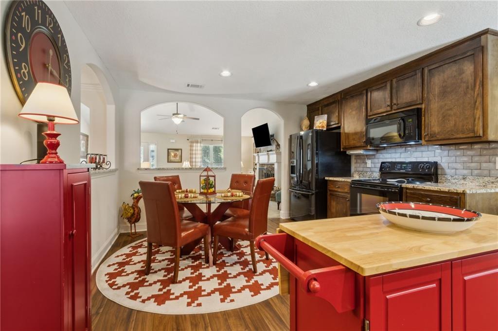 - KitchenBreakfast Room, Cabinets Stain, Country Kitchen, Eat-in Kitchen, Solid Surface Counters, View to Family Room