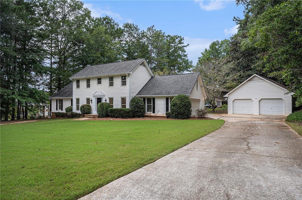 Welcome to this spacious traditional home that sits on a beautiful half-acre plus corner lot. With Four large Bedrooms and Three Full Bathrooms, this home combines big comfort and functionality. The Main level features Two Bedrooms, including the Primary suite with a beautifully updated owners Bathroom and a Secondary Bedroom with direct access to a Full Bathroom which is perfect for guest, growing or multigenerational living. Upstairs offers Two oversized Bedrooms, a shared Full Bathroom, a grand Loft room ideal for media, office, bedroom or used however desired, plus generous Unfinished Space ready for future Expansion. A bright Sunroom, cozy fireside Den, eat-in Kitchen, Dining room, and Living room provide multiple gathering spaces. Additional highlights include both an attached and detached garage, hobby room, newer windows, multiple storage spaces, and a level, expansive yard ideal for outdoor enjoyment or play. Located in a lovely established neighborhood, the home is minutes from schools, shopping, dining, and offers easy access to highways and backroads for a smooth Atlanta commute. Optional Honey Creek community amenities include golf, swim, tennis, and a country club. Move-in ready and perfect for every lifestyle.