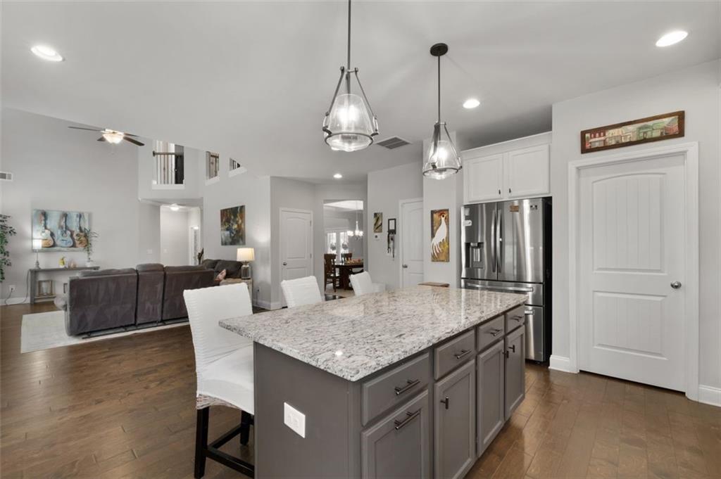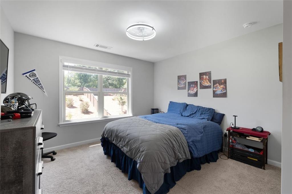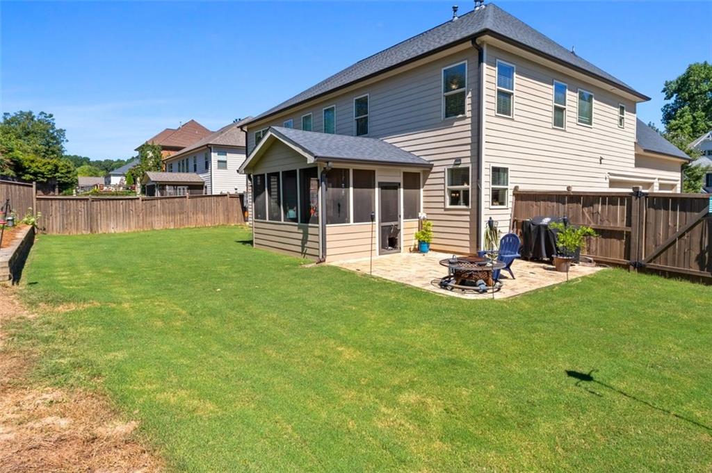 Built in 2018, the Rosewood plan in the sought after Concord Creek Subdivision is a must see! This home includes a spacious floor plan with a two story great room and foyer, open kitchen with white cabinets, walk in pantry and a large island overlooking the family room. The home features a separate dining room with beautifully coffered ceilings. This is a great house for entertaining and features a screened in porch right off the kitchen leading to a private fenced back yard. There is a guest bedroom on the main floor and a full bathroom. Upstairs you will find the spacious primary suite with a spa like bathroom and a very large closet. The remaining three bedrooms upstairs are all large in size and one includes an attached bathroom. The subdivision is well maintained and close to the outlet mall in Dawsonville, the new Coal Mountain Center and several restaurants and grocery stores.