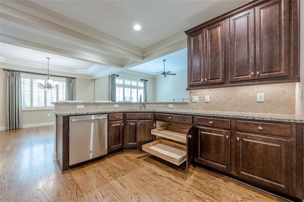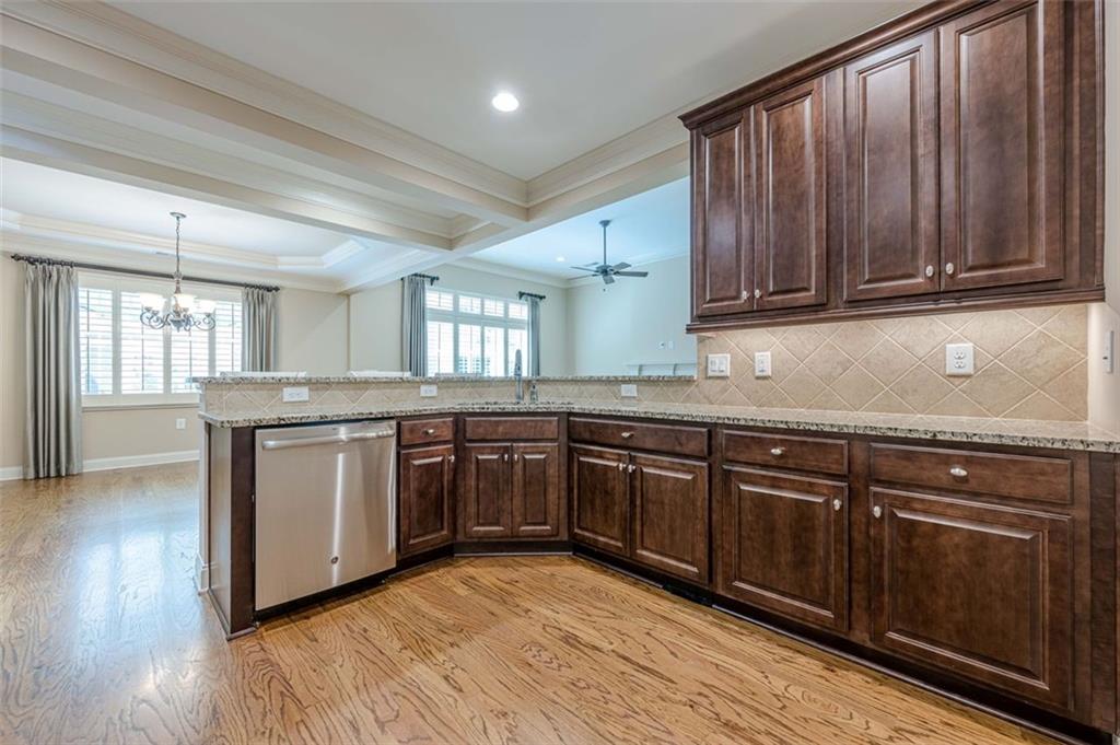 - KitchenBreakfast Bar, Cabinets Stain, Stone Counters, Pantry, View to Family Room
