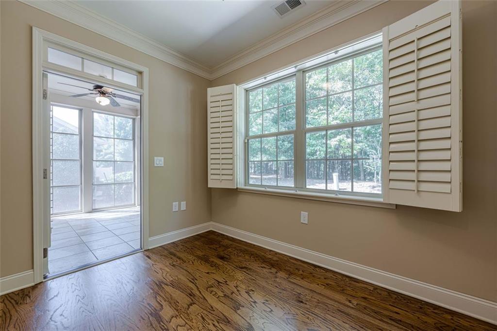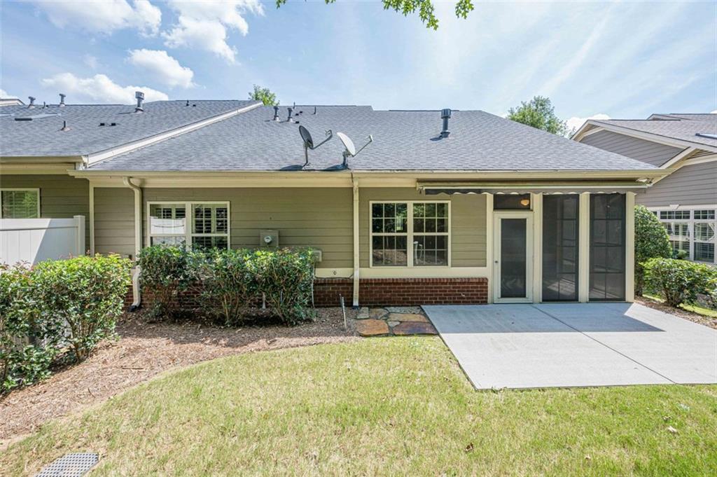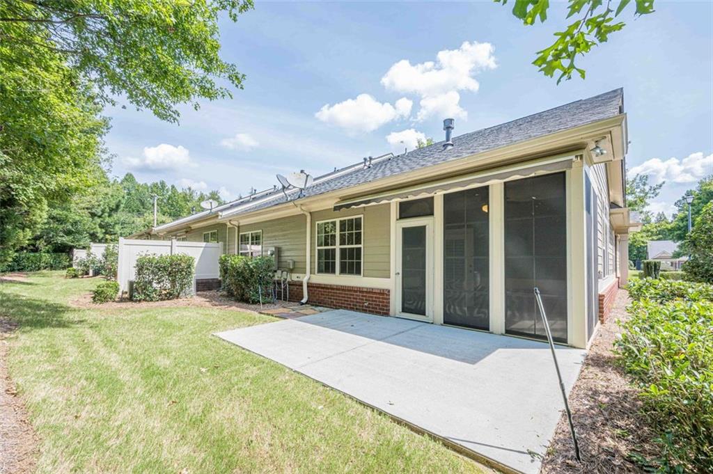 Enjoy the 'easy living' lifestyle in this highly sought-after Active Adult 55+ community! The Orchards of Brannon Oak Farm boasts a 'true sense of community'.....where neighbors get together, support each other, chat while on a morning walk and enjoy year-round social activities! One step inside this End Unit home reveals 'Pride of Ownership'. One of the largest floorplans, the Cypress, boasts the Primary Bedroom on the main level. Neutral decor! Plantation shutters! True hardwood floors! The fireside great room is generous in size and enjoys an open view and an easy flow to the light-filled sunroom, as well as to the spacious kitchen, which is classic in style. Here you will find stained cabinetry with lots of pull-out drawers, under-cabinet lighting, gleaming granite counters, a breakfast bar, stainless steel appliances and a pantry. Refrigerator included. Main-floor tiled laundry room. The formal dining room will accommodate a large dining table. The main-floor primary bedroom suite offers plenty of space. The large tiled bath includes a double granite vanity and a large shower with grab bars. You will love the oversized walk-in closet, which boasts fabulous custom built-ins galore! Tucked away at the front of the home, there is a private secondary bedroom and an en suite full bath. The upper level features a very large bonus room, which is ideal as a den, home office, craft room, exercise room, overnight guest space and more! The third bedroom is generous in size and enjoys an en suite full bath and a huge walk-in closet. There is no shortage of storage space here as there are TWO walk-in storage areas. The sunroom leads to a wonderful screened porch. You can enjoy the porch almost year-round with the vinyl windows, which offer weather protection. The private patio overlooks a natural buffer of trees and enjoys an awning when more shade is preferred. Two-car garage with a stepless entry and built-in shelving and pegboard. The $390 / monthly HOA dues include exterior building maintenance per the covenants, the termite bond, lawn care and trash pick-up. The community clubhouse offers a wonderful meeting space for various functions, a library, full kitchen and fitness center. Neighbors enjoy casual gatherings at the beautiful pool, as well as water aerobics in the summer. There is always something going on here.....!!! Canasta, Bridge, Poker, Bunco, Bingo, Mah-jongg, Book Club, Saturday Brunches, several themed get-togethers, Men's monthly Lunch, Ladies monthly Lunch, lots of walkers in the morning...... and so much more!!! The community boasts a terrific South Forsyth location nearby all the everyday conveniences, as well as nearby Northside Hospital, Emory Hospital and medical offices. Forsyth County boasts low property taxes and a great Senior tax exemption! There is a LOT to LOVE about this home and living at The Orchards of Brannon Oak Farm!!!