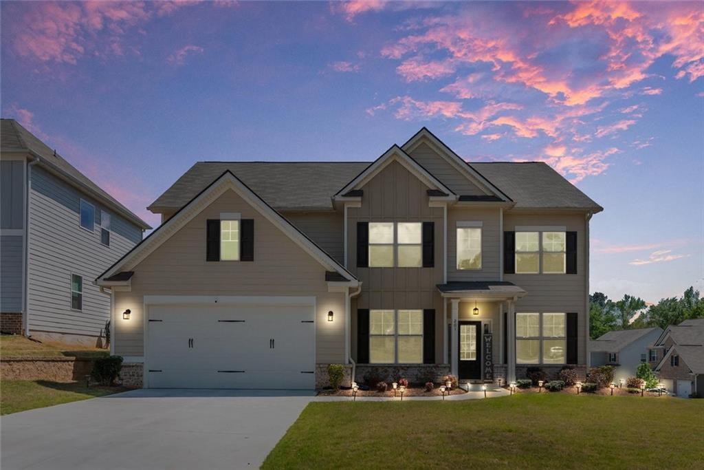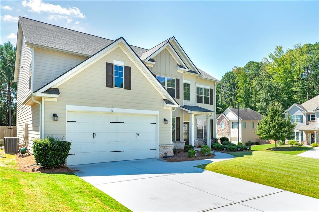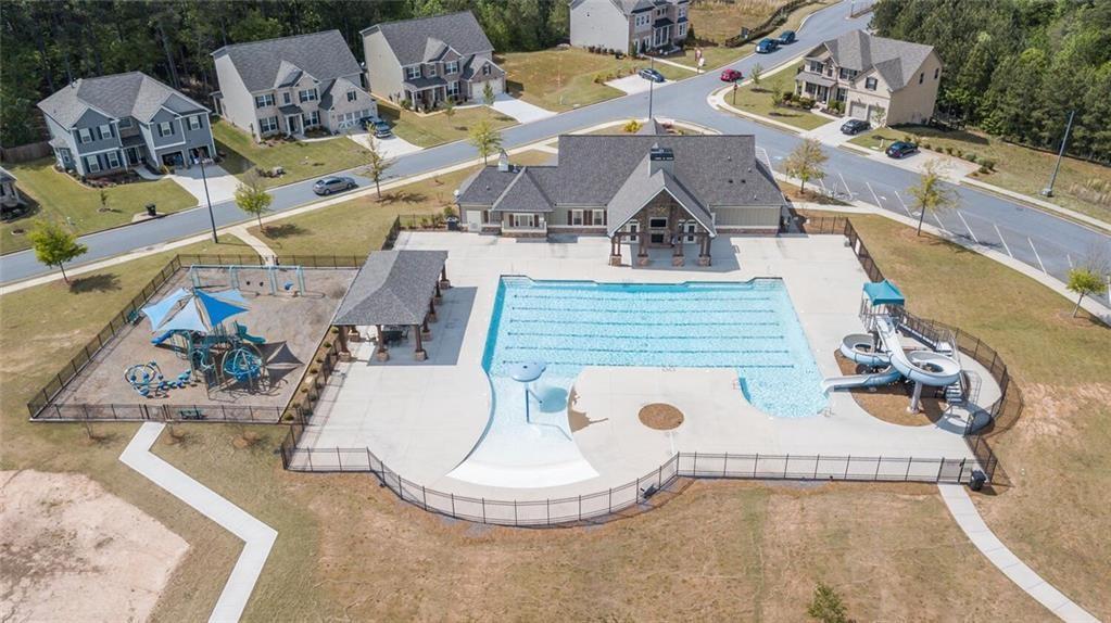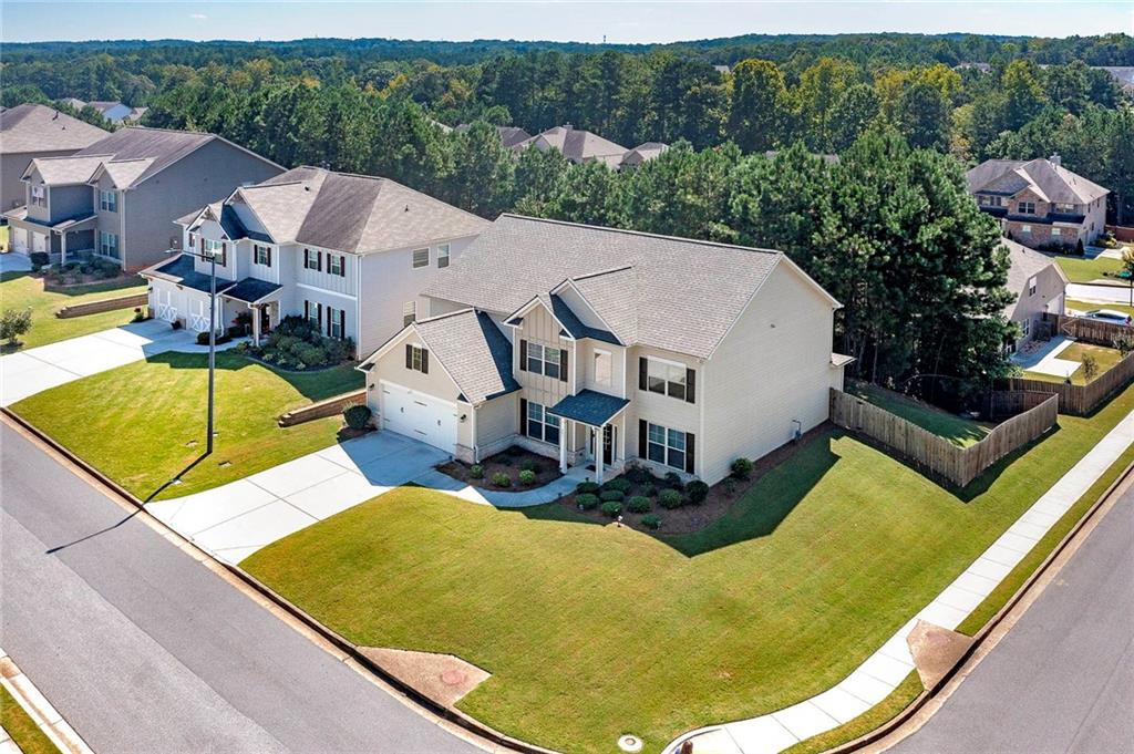 Hurry and check out this Gorgeous New Listing in the desirable Oakleigh Pointe Subdivision in Dallas, GA! This beautiful corner lot features 5 bedrooms, 4 full baths almost 4,000 sq ft. The kitchen is an HGTV gourmet style with 42 in cabinets, granite countertops, double ovens, tile backsplash, a large island, breakfast area, stainless steel appliances, and hardwood floors! Large family room with a gas fireplace, bed/bath on the main, 2 story foyer with hardwood floors, formal dining room, formal living room, iron spindles, 2 car garage, fenced in yard, covered screened in extended patio with a wood burning stone fireplace perfect for game day and entertaining. Upstairs you will find a long hallway, luxurious large owner's suite with a sitting room, trey ceilings, his & her double sinks, spa like bathroom with a tiled shower & tub, and a huge walk-in closet, additional large size bedrooms and full bathrooms. Amenities include a community courtyard that provides access to a clubhouse fully furnished with a full kitchen for reservations, swimming pool with a water slide, a playground, a gym, dog park, sidewalks, streetlights and tennis courts! The community is conveniently located to schools, food, grocery stores, and more. *Professionally manicured and treated lawn. Home Warranty included! Schedule your showing today because this home will not last long on the market!