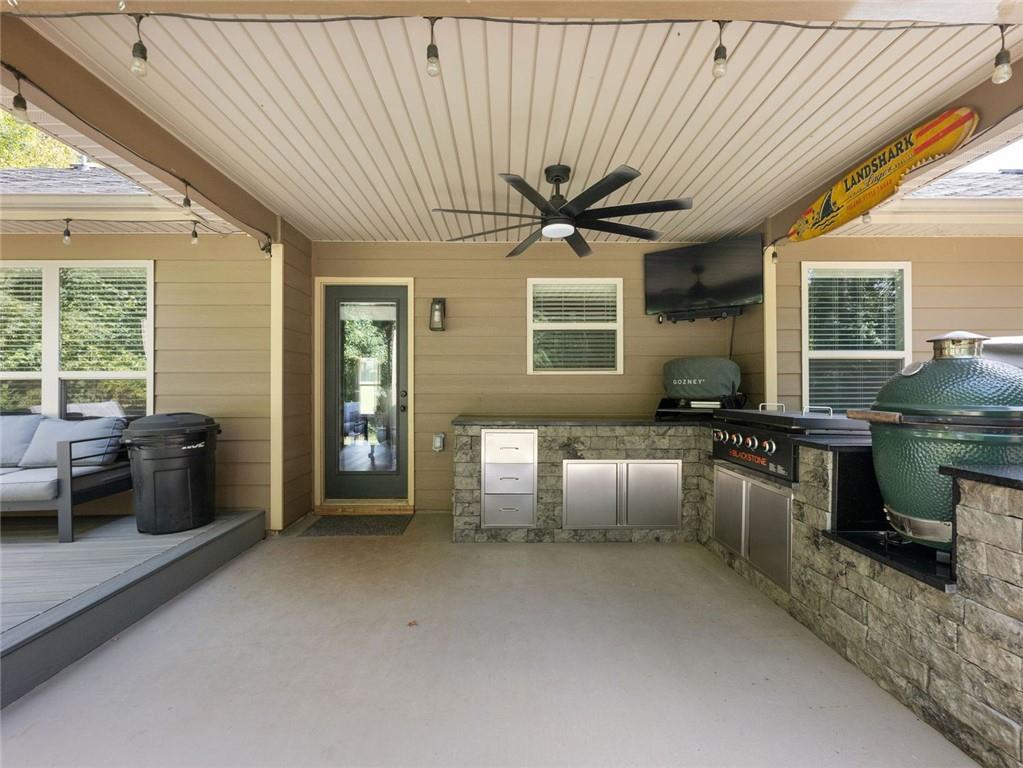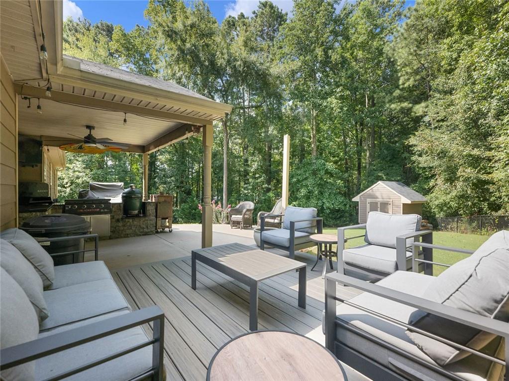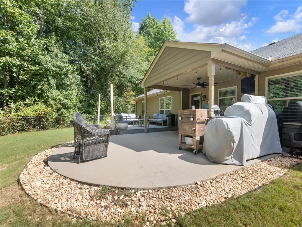 Welcome to 402 Rouse Road in Hoschton—a home that offers privacy, space, and thoughtful upgrades inside and out. Nestled on a 1.42-acre cul-de-sac lot, this property is surrounded by mature trees and professional landscaping, with no neighbors on either side, creating a true private retreat in one of the fastest growing counties in Georgia and among the top five in the nation. The original owners have maintained the home meticulously and enhanced it with designer colors, updated lighting, and luxury vinyl plank flooring throughout. The kitchen is the heart of the home, featuring a large island, beautifully painted cabinetry, stone countertops, and a tile backsplash, flowing seamlessly into the living area with its custom built-ins and accent walls. The primary suite is a true sanctuary with a just-completed spa-inspired bathroom boasting an oversized tiled shower with bench, soaking tub, and fresh finishes. Secondary bedrooms are spacious and versatile, perfect for family, guests, or a home office. Outdoor living is unmatched here: enjoy a covered patio with a built-in outdoor kitchen, an extended patio for gatherings, and a deck arranged as an outdoor living room, all overlooking a private wooded backyard. Whether it’s morning coffee, family cookouts, or evenings under the stars, this space is designed for every season. With its ideal location, private lot, and move-in-ready upgrades, this home stands out as a rare opportunity in Hoschton. The outdoors are every bit as inviting: a professionally landscaped, all-private backyard with no neighbors on either side, designed for year-round living and entertaining. A covered patio with a built-in outdoor kitchen, an extended patio, and a deck arranged as an outdoor living room set the stage for game days, quiet mornings, and evenings under the stars. With unmatched privacy, thoughtful upgrades, and a setting that combines natural beauty with modern comfort, this home stands out as a rare find in Hoschton.
