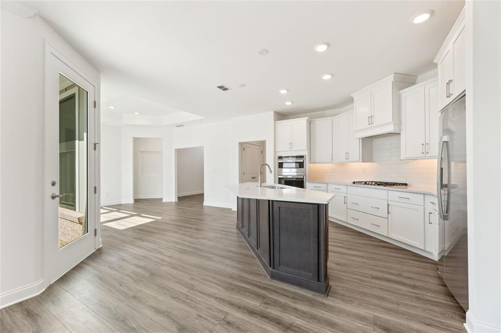 Home of the Month! Enhanced Courtyard! Welcome home to Epcon’s popular 3 bedroom, 3 bath Portico Bonus floor plan. The combination of natural light, private courtyard, and thoughtful design elements makes it a perfect space for both relaxation and entertaining. Enjoy your view to the private, fenced courtyard with stone pavers from all rooms in the main living space. The angled kitchen with GE appliances, quartz countertops, creates a cozy yet stylish atmosphere. The kitchen is the heart of the home and has views to the fireside family room with a shiplap accent wall, dining room with tray ceiling and a flex space perfect for a home office. The owner’s suite has two large walk-in closets, vaulted ceiling, and door to your private courtyard. The ensuite bathroom has zero entry shower, linen closet, and double sink vanity. Laundry room is stubbed for sink and has built-in cabinets for extra storage. The utilitarian space is in the laundry to conveniently change the filters. This home features a large bonus room, full bath, and 3rd bedroom upstairs. Oversized garage is 22’ wide and can comfortably accommodate 2 vehicles and some storage space. The Courtyards of Franklin Goldmine is a gated community with 27 homesites. Amenities include a dog park, lawncare, trash service, pickleball courts, bocce ball, firepit, large pavilion and cornhole. We are minutes from GA400, The Cumming City Center, The Big Creek Greenway, dining, shopping and .5 miles from Publix.