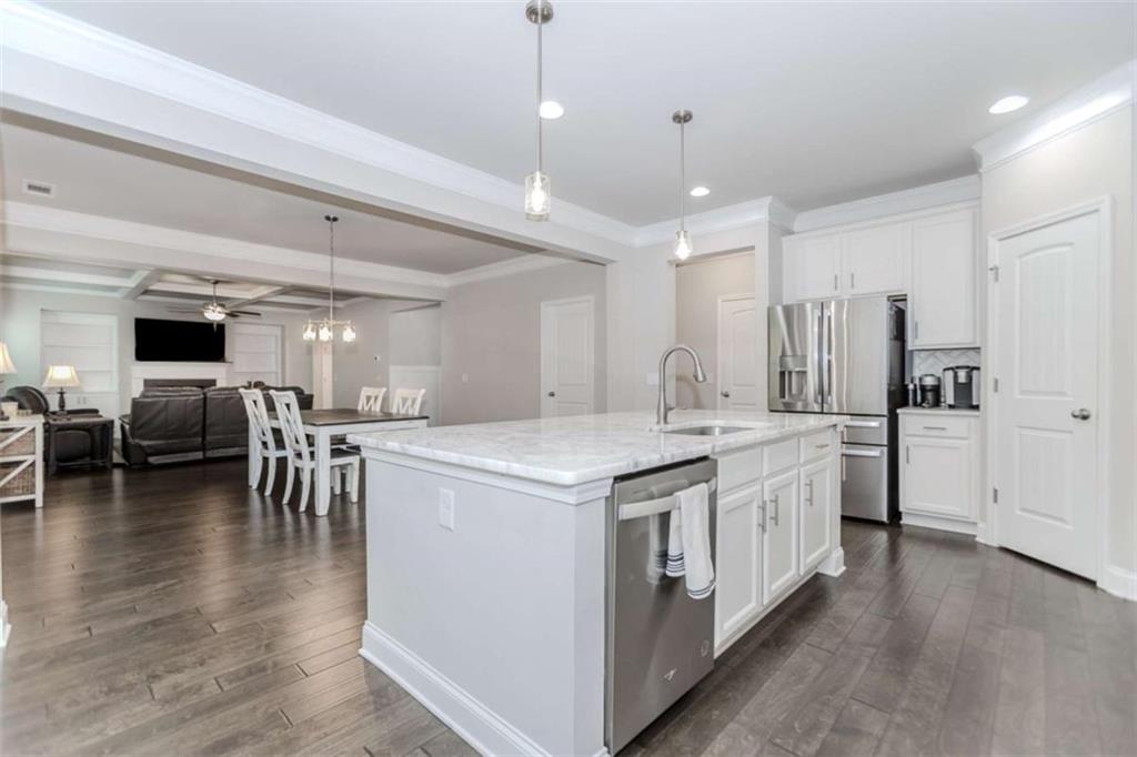 LAKE LANIER living at its finest! This stunning 4-bedroom, 3-bathroom residence offers a perfect blend of luxury and comfort, with plenty of upgrades and thoughtful design throughout. As you step inside, you'll be greeted by an open-concept living room, dining area, and kitchen, ideal for entertaining and everyday living. The spacious living room flows seamlessly into the dining area and a gourmet kitchen, equipped with modern appliances, sleek countertops, and ample cabinet space. The main level features a convenient bedroom, perfect for guests or as a private office. Upstairs, the master suite is a true retreat, boasting a luxurious en-suite bathroom and generous walk-in closet. Two additional bedrooms share a well-appointed bathroom, while an open flex space offers endless possibilities for a media room, office, or playroom. Step outside to enjoy the outdoor game day covered porch w/ fireplace, perfect for hosting barbecues or relaxing with family and friends. The neighborhood has a community pool, playground, and a community dock for fishing and sunbathing on the party deck, and also has a storage yard to store your boat and/or RV. What's better than being able to load your boat in your driveway and launch it in Lake Lanier, less than a couple of miles away, and be ready to hang out on the water and enjoy some fun in the sun! Ultra-Convenient Location between GA 400 and I-285*Only 10 Minutes to Shopping, Dining, etc.