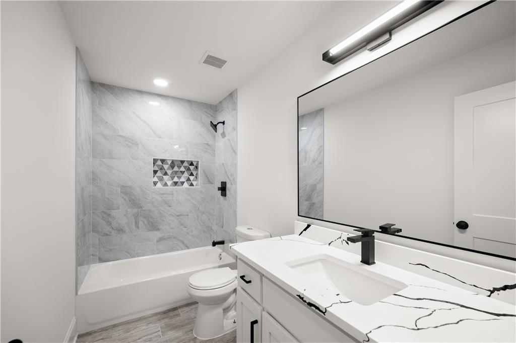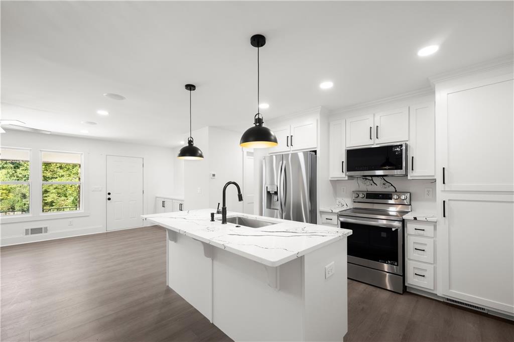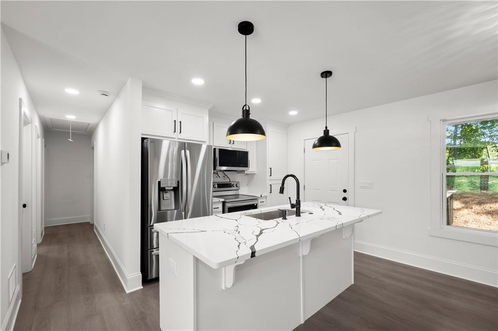 Welcome to your NEW HOME in desirable Buford, located in the sought-after Lanier High School district! This fully renovated home is essentially brand new with all new HVAC, windows, plumbing, electrical, interior/exterior paint, sheetrock, flooring, appliances, and landscaping. The open-concept design features a stunning kitchen with new stainless steel appliances, marble countertops, and an island overlooking the living area, complete with built-in Bluetooth speakers for entertainment. The main level offers two bedrooms including a master suite with its own full bathroom, plus an additional full bath. Upstairs you’ll find a large bedroom with its own full bathroom, perfect for guests or a private retreat. A two-car garage, modern finishes throughout, and a large, private yard in a quiet Lake Lanier neighborhood with no HOA make this home a RARE FIND. Convenient to shopping, dining, Lake Lanier, and major highways. No stone was left unturned in this quality renovated home - schedule your tour TODAY!