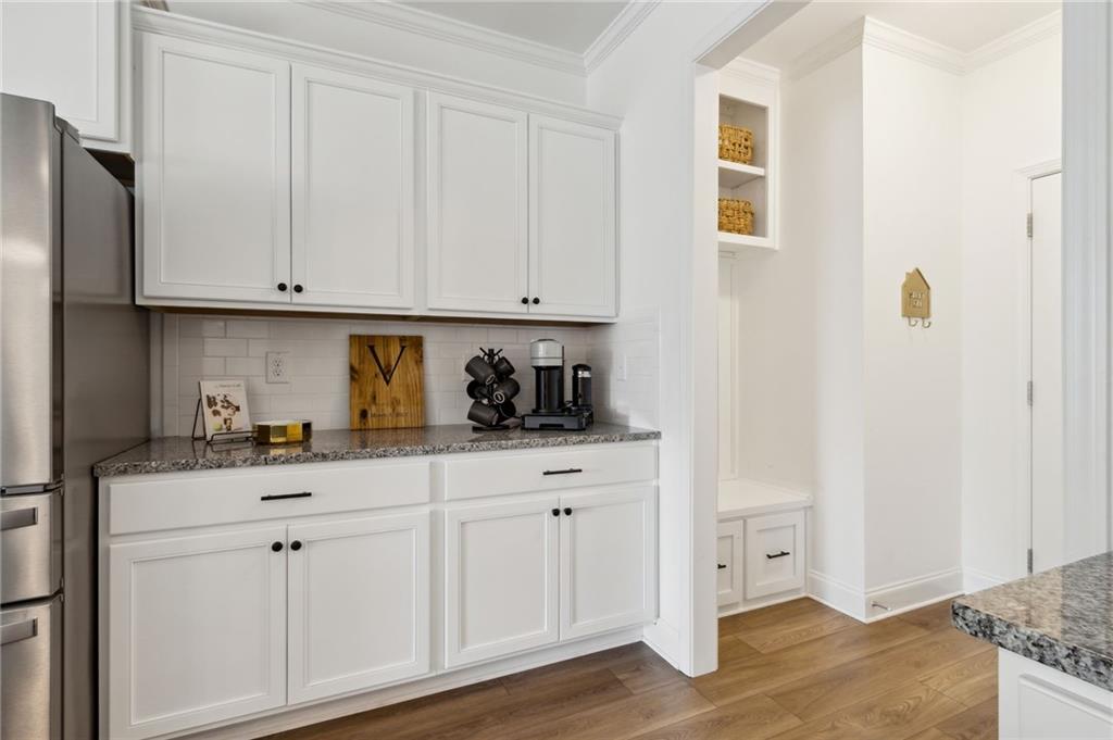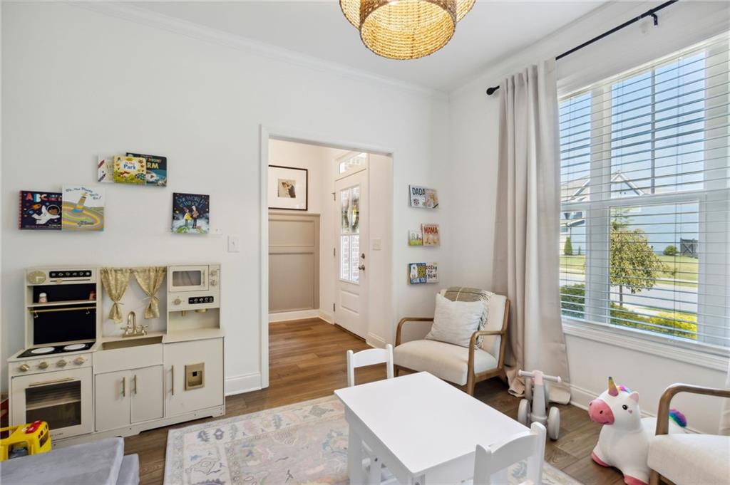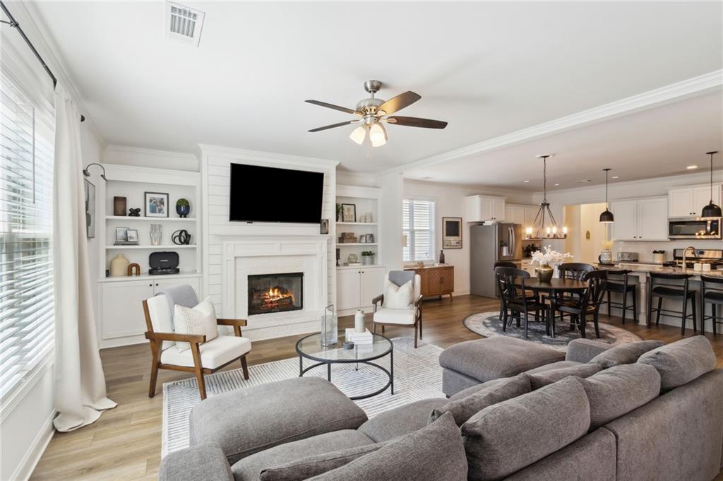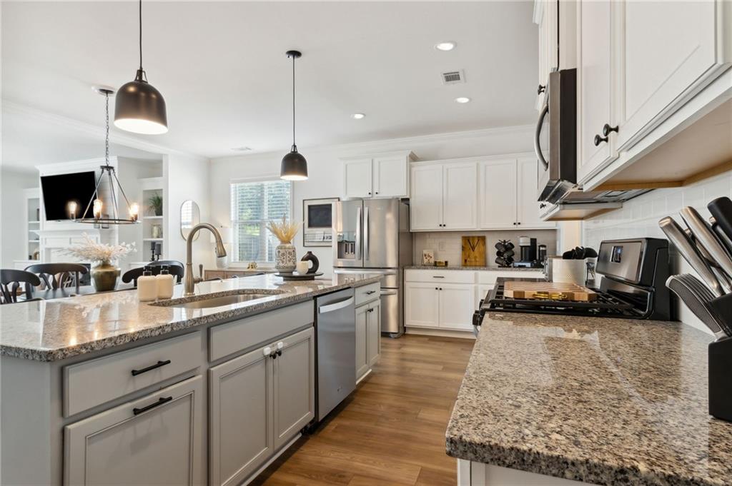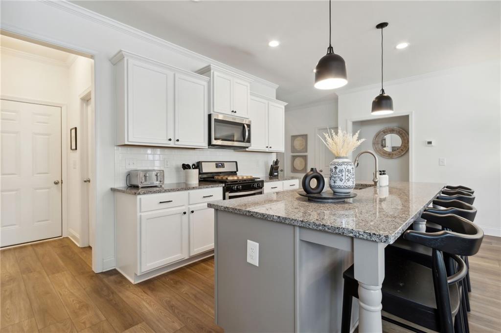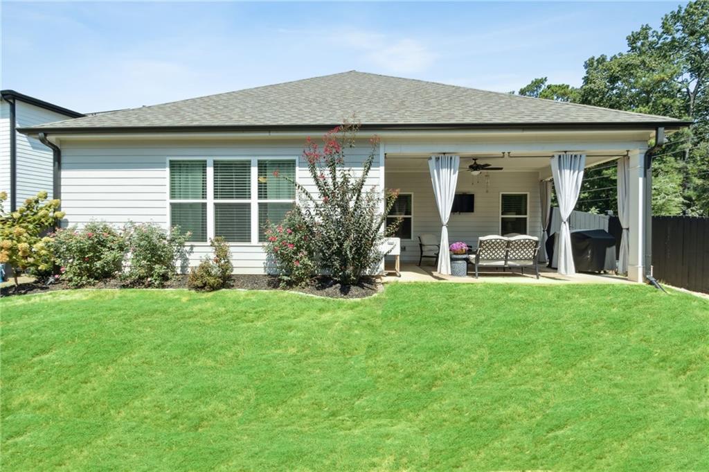 Beautiful almost new home nestled in the Park Haven community just moments from Downtown Flowery Branch! This home blends contemporary style with everyday comfort. Set on a rare corner lot, the home features an open-concept layout. The chef’s kitchen steals the show with custom cabinetry, a sleek tile backsplash, farmhouse sink, and a spacious walk-in pantry with custom shelving. Gorgeous hardwood floors and charming shiplap accents bring warmth and character to the main level. Still on the main level is the luxurious primary suite, complete with a walk-in closet and a spa-like soaking tub—the perfect place to unwind. Upstairs, there are three bedrooms, two full baths, and a huge flex space room with custom-built cabinets. This room is perfect for a home office, media room, or huge playroom! Outside this stunning home, you will find a covered patio with a fenced backyard that provides a peaceful spot to enjoy the outdoors, ideal for both relaxing entertaining friends and family. All of this is just a few minutes from Lake Lanier and downtown Flowery Branch, where you can enjoy local restaurants and shopping.