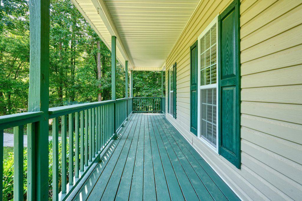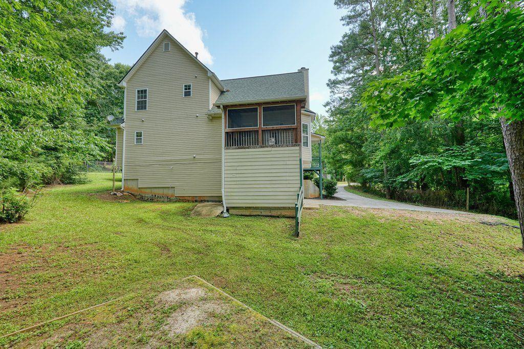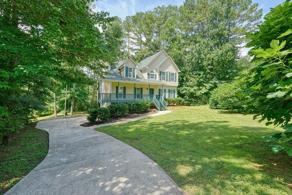 Welcome to this inviting residence featuring a charming open front porch, perfectly situated in the desirable Paces Lake Community of Dallas, GA. Surrounded by mature trees and backing to a serene lake, this home offers both privacy and peaceful views. The main level boasts a spacious primary suite with hardwood floors extending throughout. Upstairs, you'll find three additional bedrooms and a full bathroom, ideal for family or guests. A full basement provides abundant storage and endless potential for future expansion. Relax and unwind on the screen-in-porch, overlooking a lush backyard and tranquil lake views. Additional storage beneath the porch adds even more convenience.