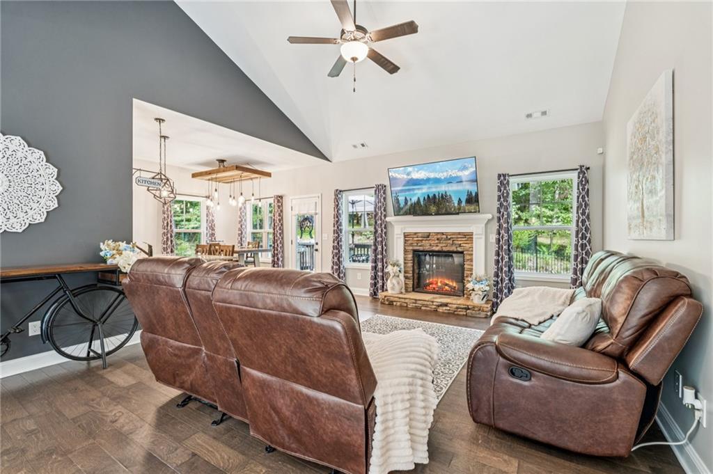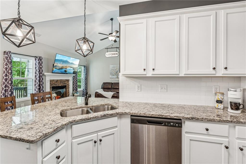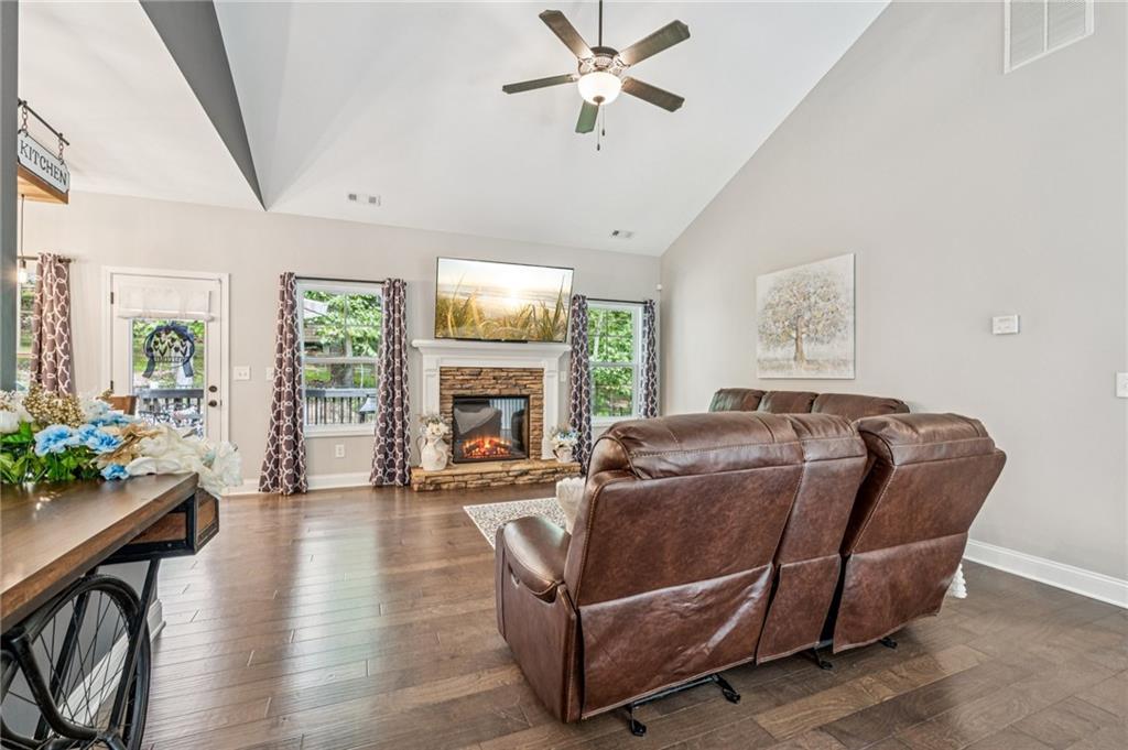 Step into a home that defies expectation from the moment you arrive. Built in 2022 and thoughtfully designed with a modern edge, this 4-bedroom, 3-bathroom stunner effortlessly blends style and function across an open-concept layout that feels both expansive yet intimate. The living room draws you in with its vaulted ceilings and stone fireplace centerpiece, while the sleek kitchen—dressed in granite, stainless steel, and brilliant white cabinetry—flows seamlessly into a sunlit dining space. Out back, an oversized deck and a lush, fully fenced yard set the stage for everything from weekend barbecues to peaceful evenings under the stars. But there’s more beneath the surface—literally. The fully finished basement has been reimagined into a stylish in-law suite or private studio, complete with its own kitchen, living area, full bathroom, and bedroom. Whether it becomes a multigenerational haven, creative workspace, or media room the possibilities are wide open. The 3-car garage includes a dedicated workshop bay, ideal for hobbyists, craftsmen, or anyone seeking the perfect blend of utility and creativity. Every inch of this home feels intentionally crafted, with modern finishes and fresh upgrades throughout. Located in the gated resort-style community of Fairfield Plantation in Villa Rica, GA, this home offers more than a beautiful setting—it offers a lifestyle. Fairfield Plantation surrounds you with 3,000 acres of natural beauty, including a 300-acre lake perfect for boating and fishing, an 18-hole golf course, and walking trails that feel miles away from city life. Enjoy private access to two community pools, tennis courts, and a marina with its own lakeside restaurant. Just minutes from downtown Villa Rica and a short drive to Atlanta, this home offers both tranquility and convenience. If you’ve been waiting for a home that checks all the boxes—and then adds a few you hadn’t even considered—this is it. Don't let someone else discover it first. Schedule your private tour today and come see what makes this modern masterpiece in Fairfield Plantation the one worth moving for.
